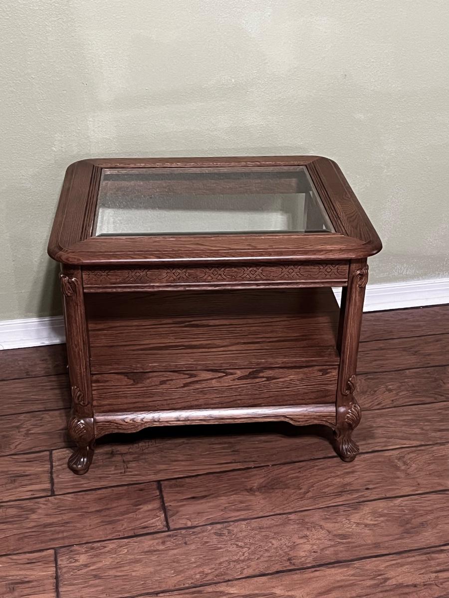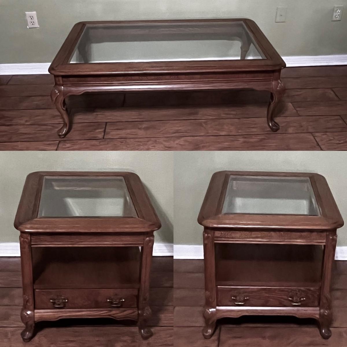 BASSETT ~ Three (3) Piece Living Room Set ~ Solid Oak ~ Glass Tops