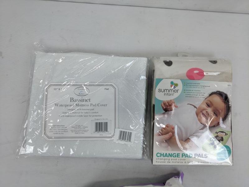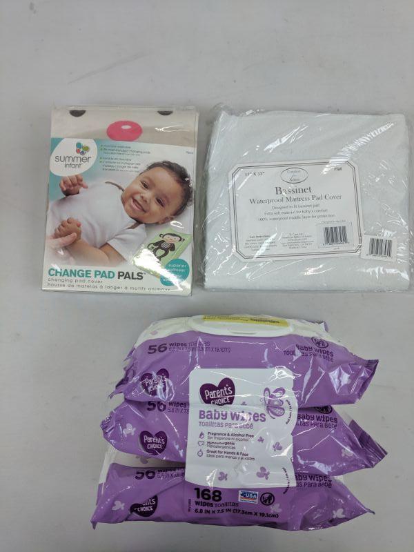 Bassinet Waterproof Mattress Pad Cover 15" x 33", Summer Infant Change Pad Pals, Parent's Choice Baby Wipes 168 Count - New