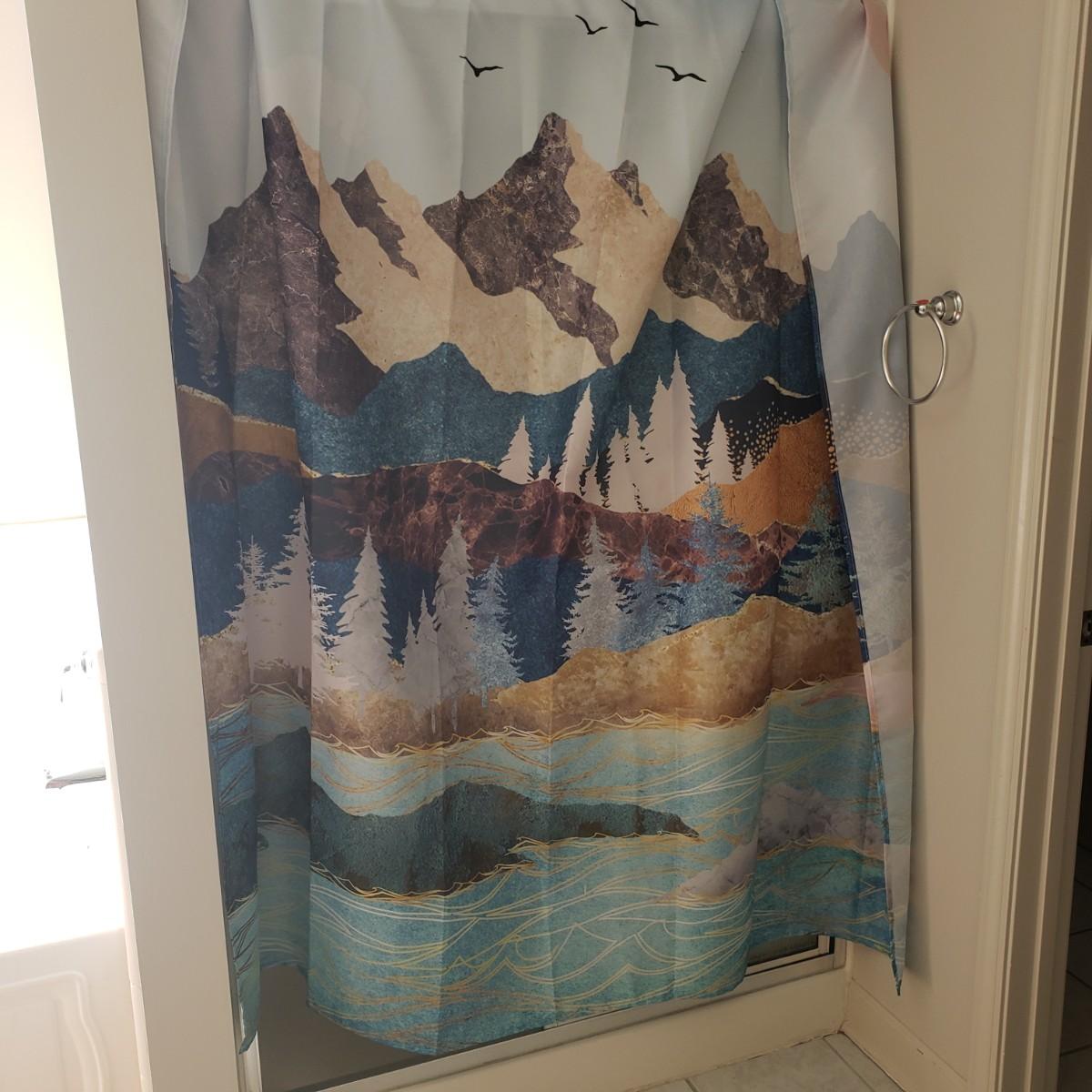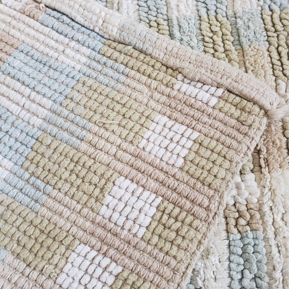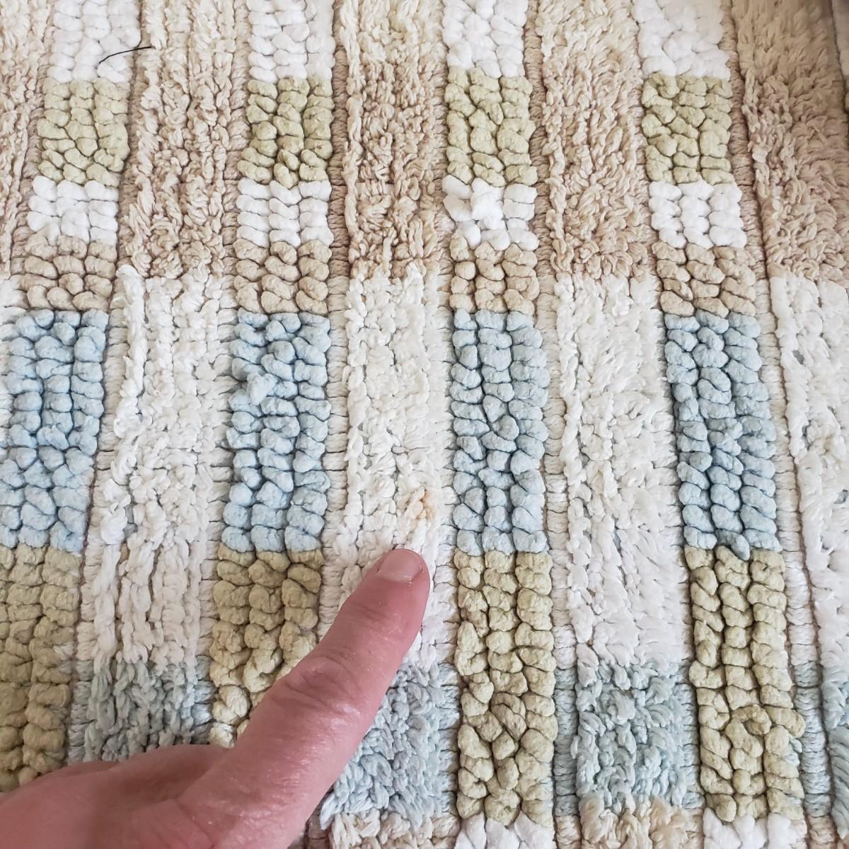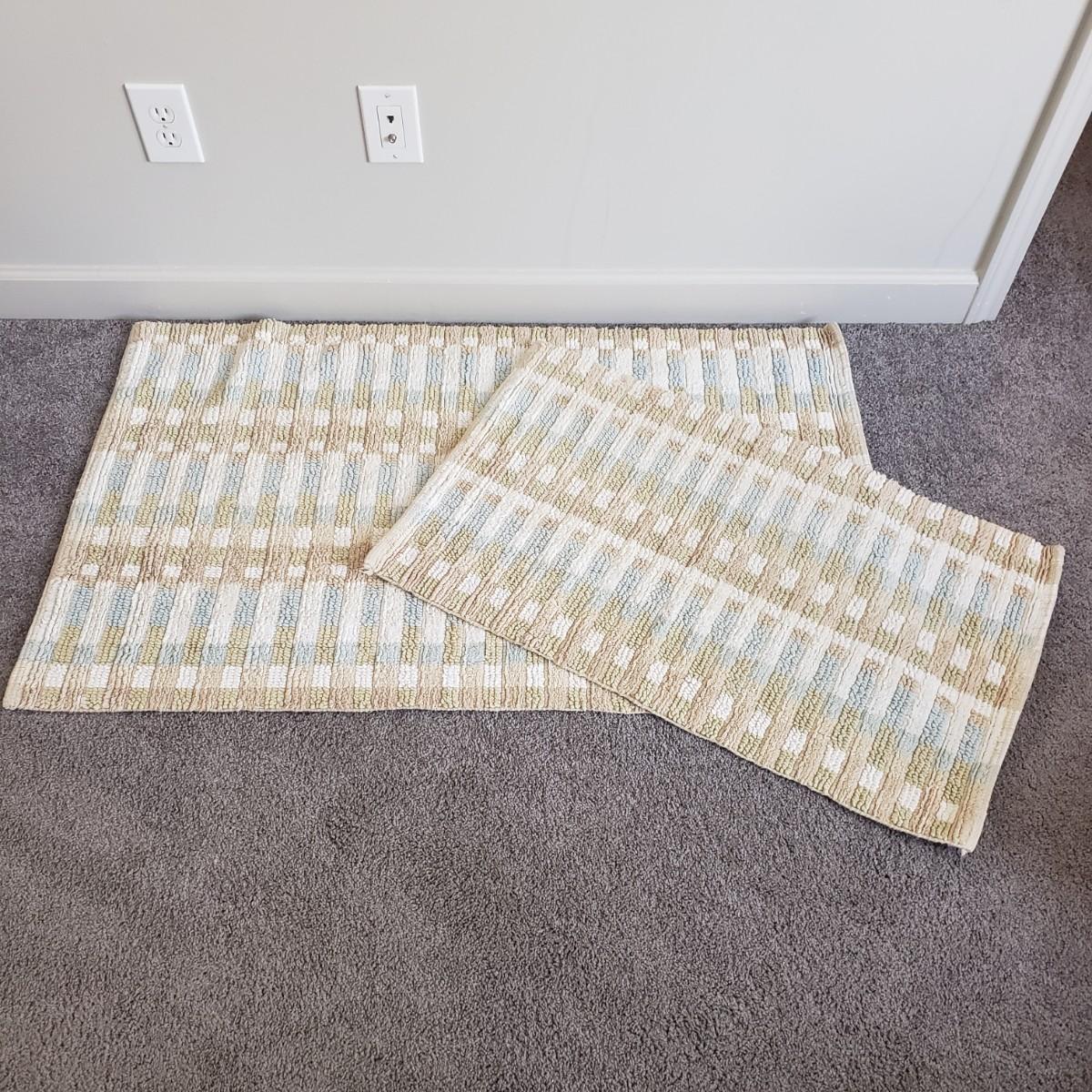 This is a large bathroom accessory lot. There are NIB items: Moen shower head, a bamboo squatty potty, iDesign plunger/brush set, and a Command shower caddy. There are towel sets, cotton rugs, the largest rug measures 48" x 27". The tweed trash can with faux leather bottom measures 14" x 17" x 13"H. The vintage hand towel rack with a marble base measures 4" x 11" x 12"H. There is a rusting spot on some metal rings between the plastic pieces. Also included is a black metal toilet roll holder (measures 8” x 5” x 14”H) and a matching set of Wamsutta ceramic bathroom accessories; bin has two hairline cracks, it measures 9”D x 10”H.