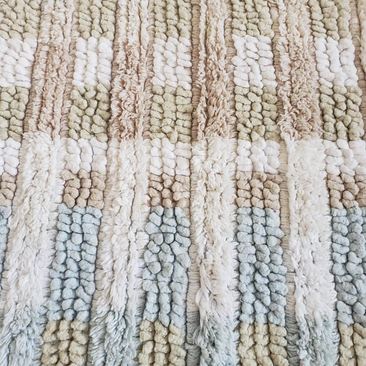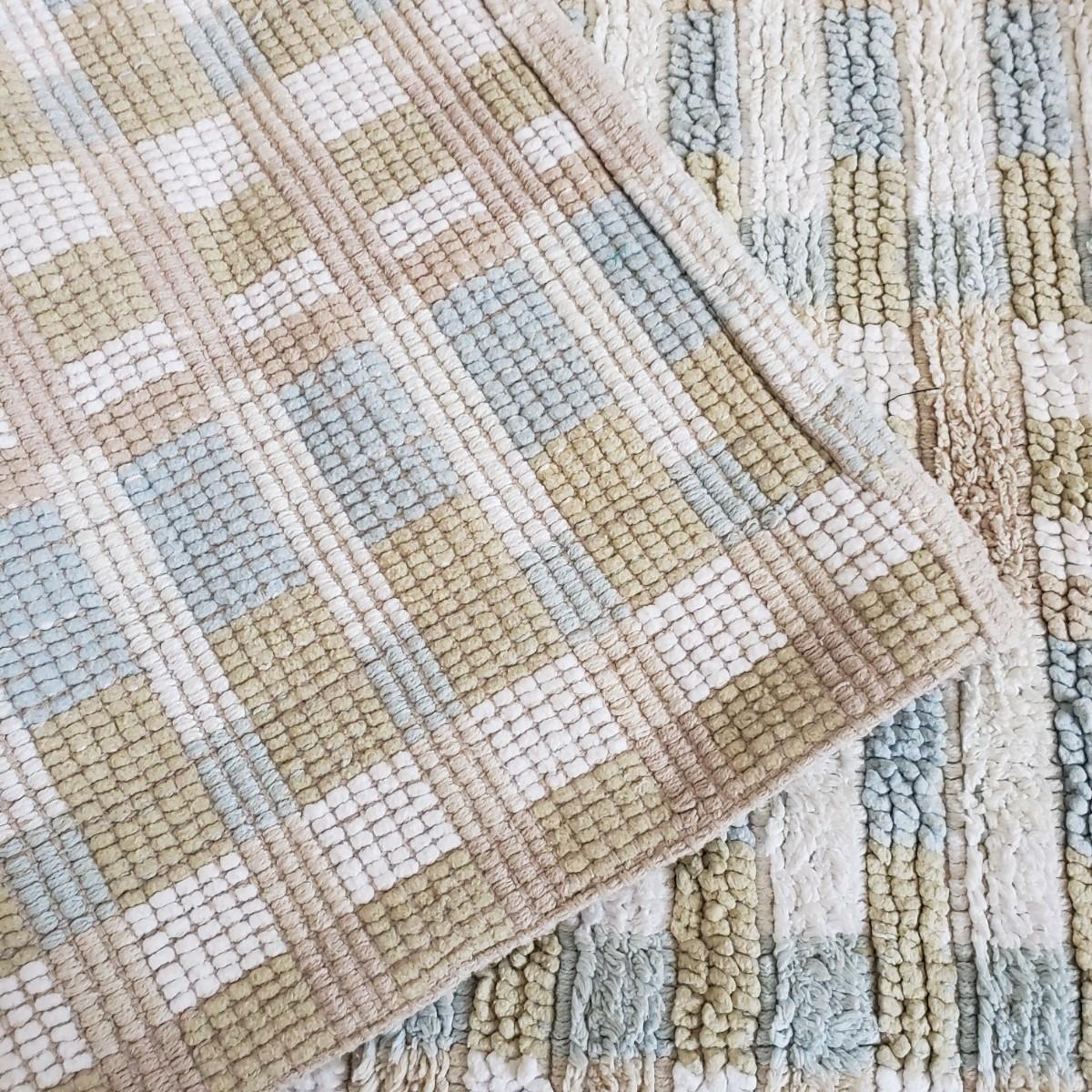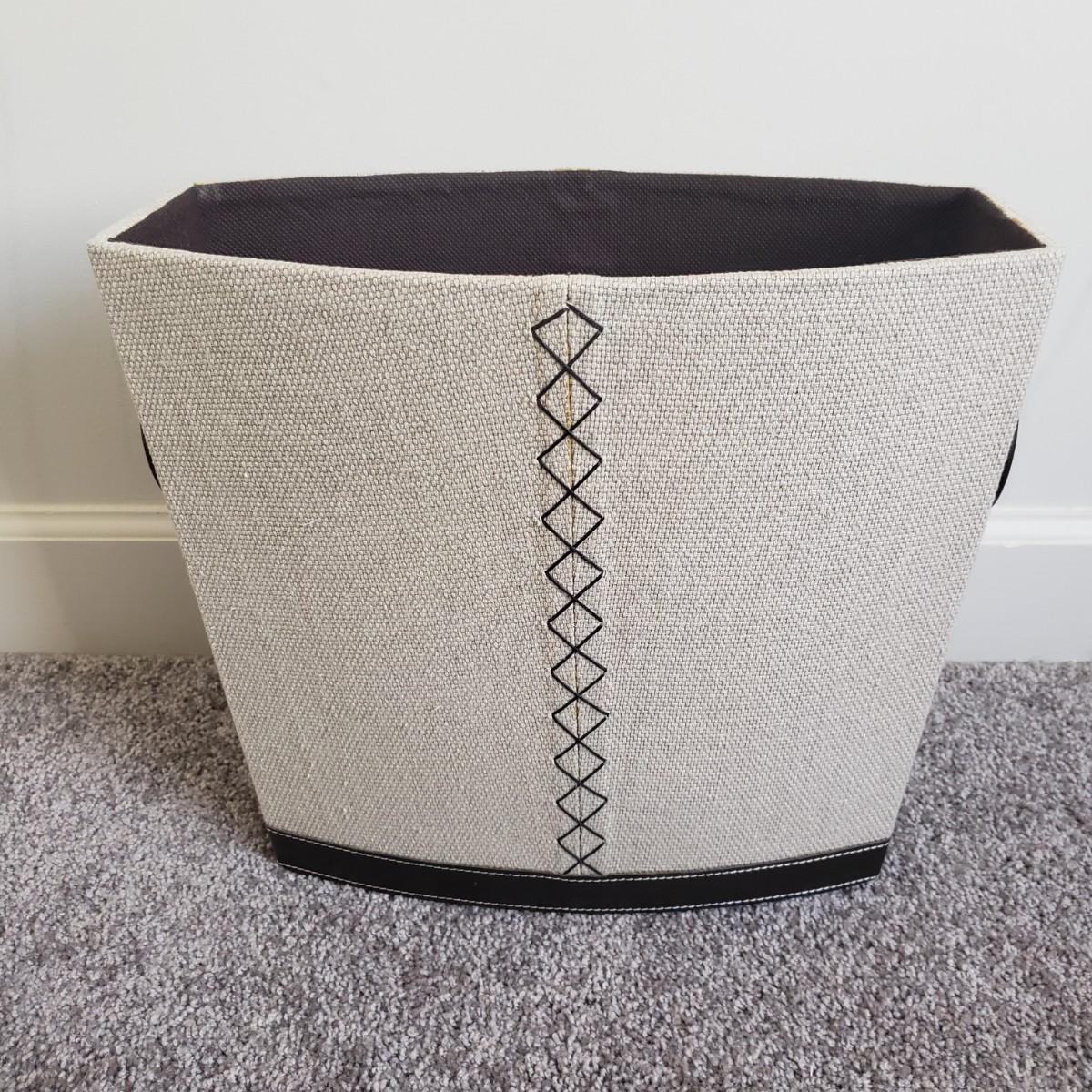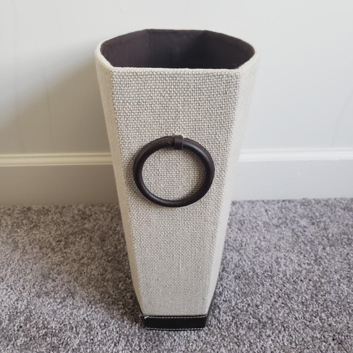 This is a large bathroom accessory lot. There are NIB items: Moen shower head, a bamboo squatty potty, iDesign plunger/brush set, and a Command shower caddy. There are towel sets, cotton rugs, the largest rug measures 48" x 27". The tweed trash can with faux leather bottom measures 14" x 17" x 13"H. The vintage hand towel rack with a marble base measures 4" x 11" x 12"H. There is a rusting spot on some metal rings between the plastic pieces. Also included is a black metal toilet roll holder (measures 8” x 5” x 14”H) and a matching set of Wamsutta ceramic bathroom accessories; bin has two hairline cracks, it measures 9”D x 10”H.
