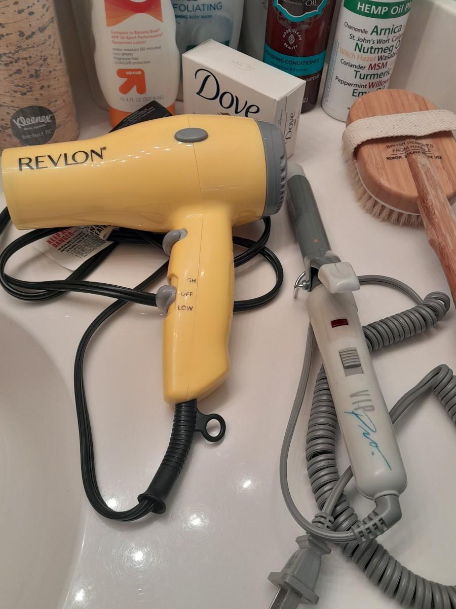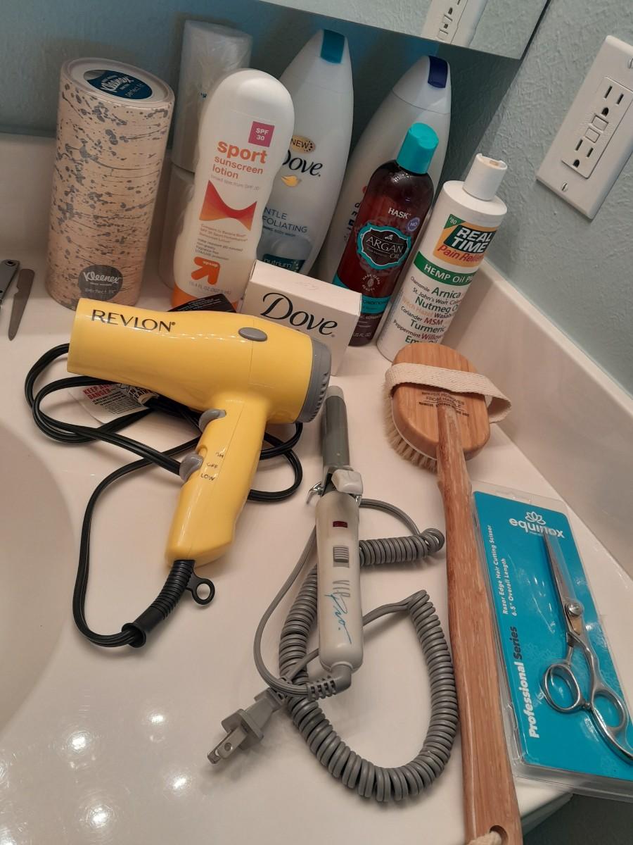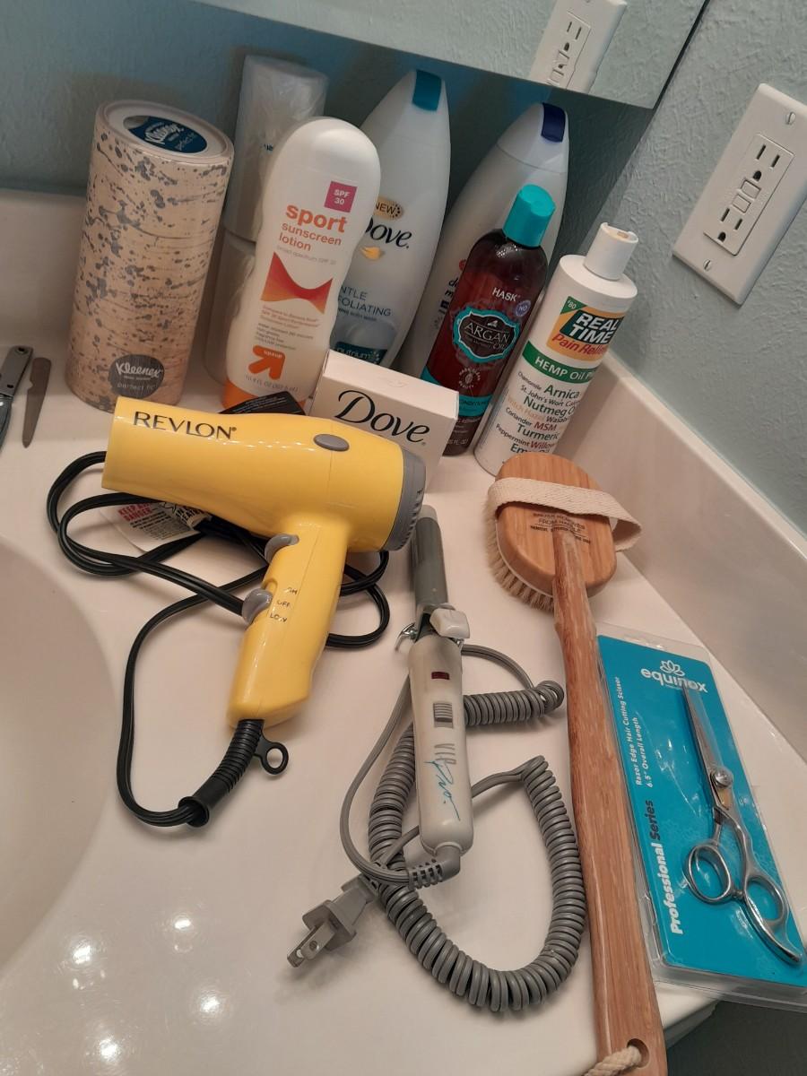 BATH AND BEAUTY SOAPS AND LOTIONS, REVLON HAIR DRYER, CURLING IRON AND MORE