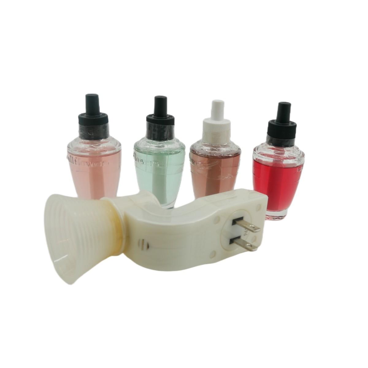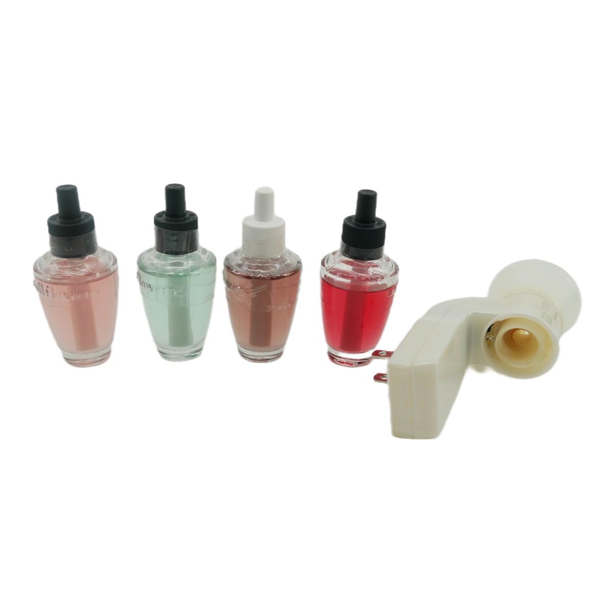 One used Bath & Body Works Wallflower Plug and four new but leaking wallflower refills. Scents are unknown.