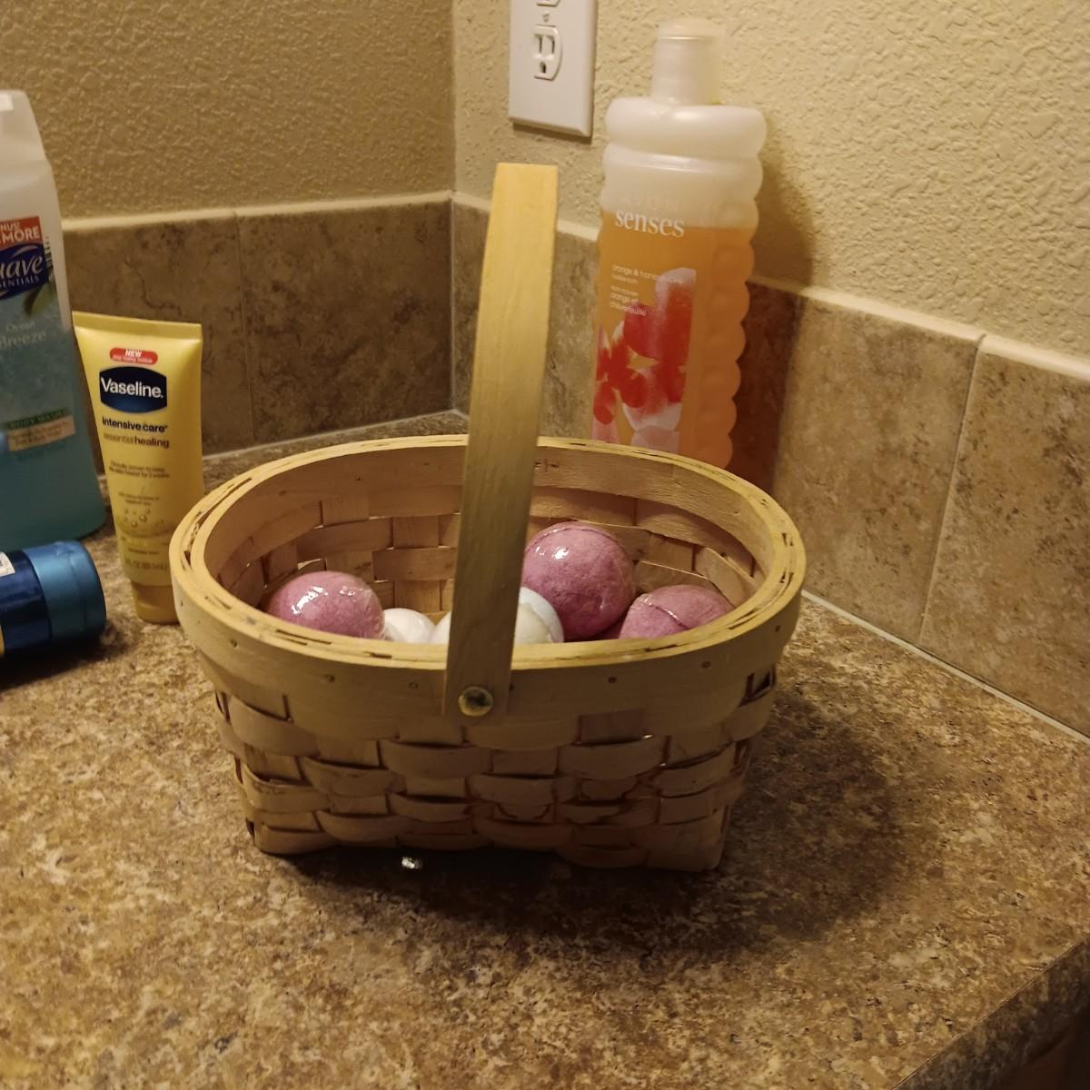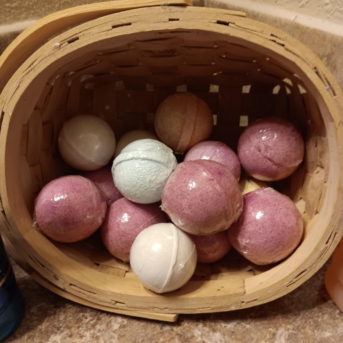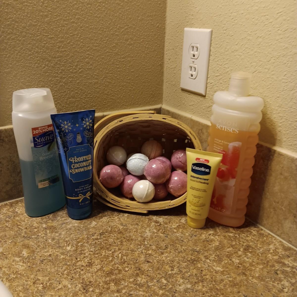 BATH BOMBS IN A BASKET AND TOILETRIES