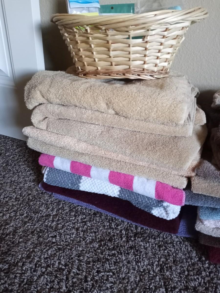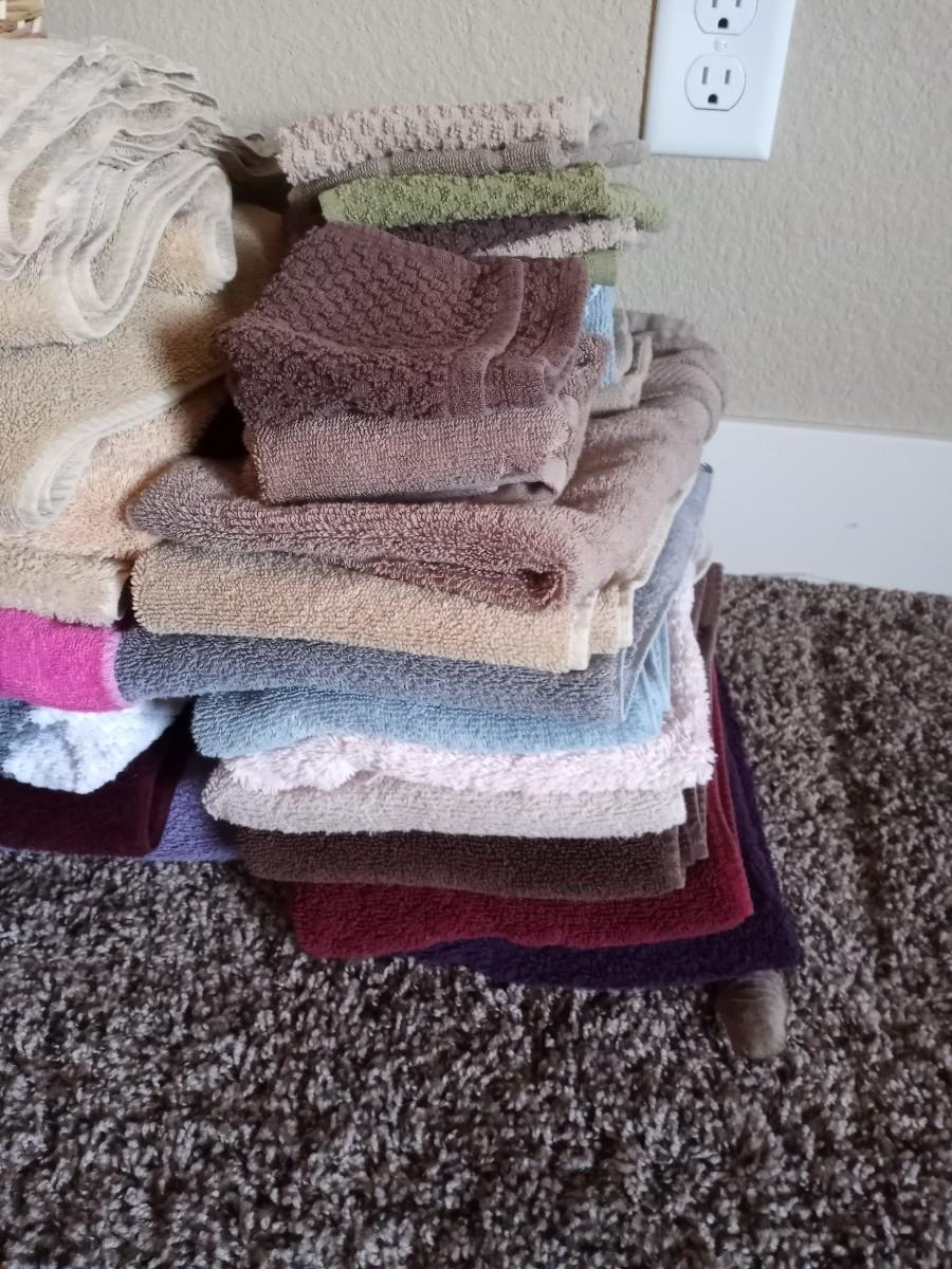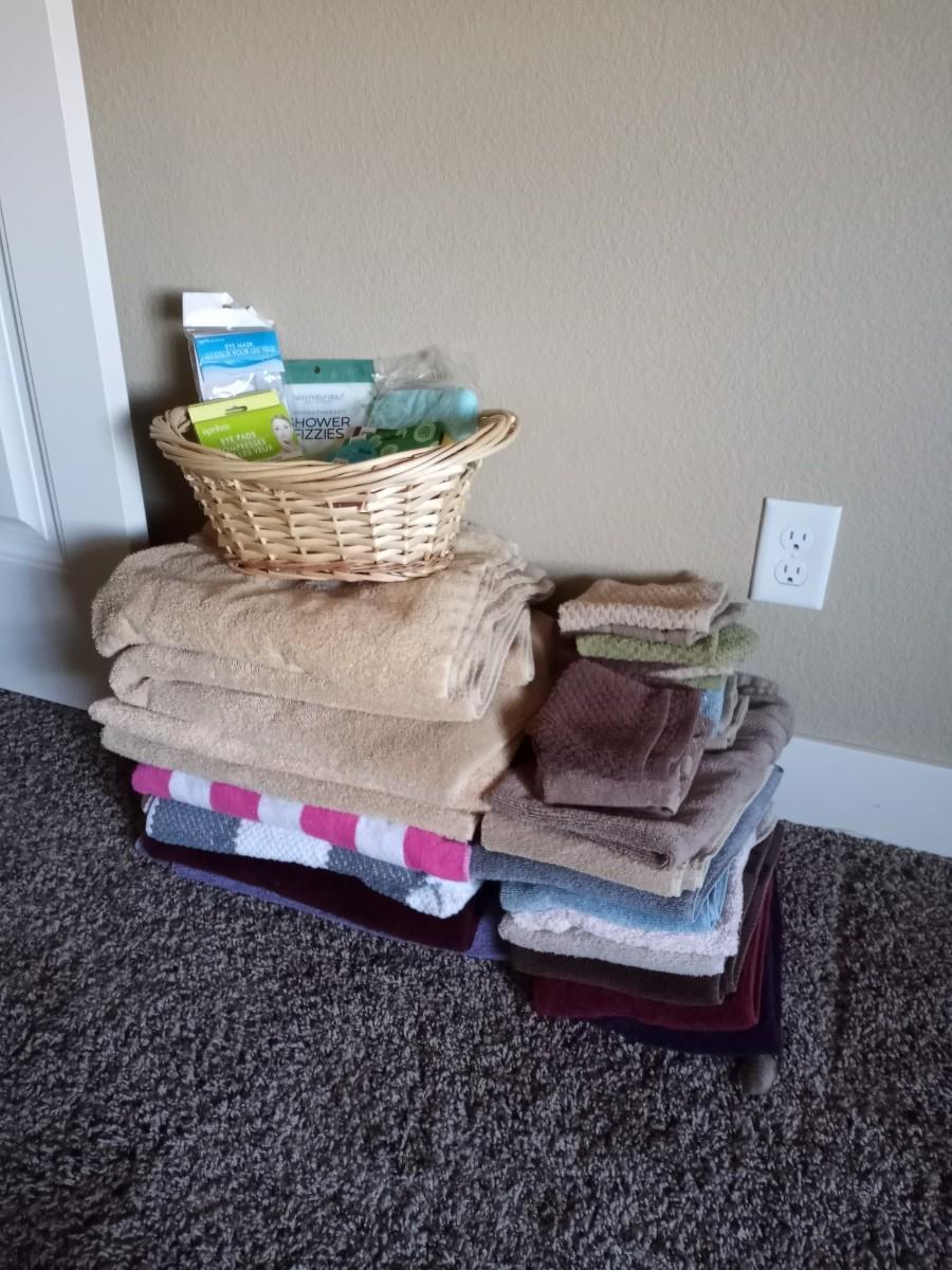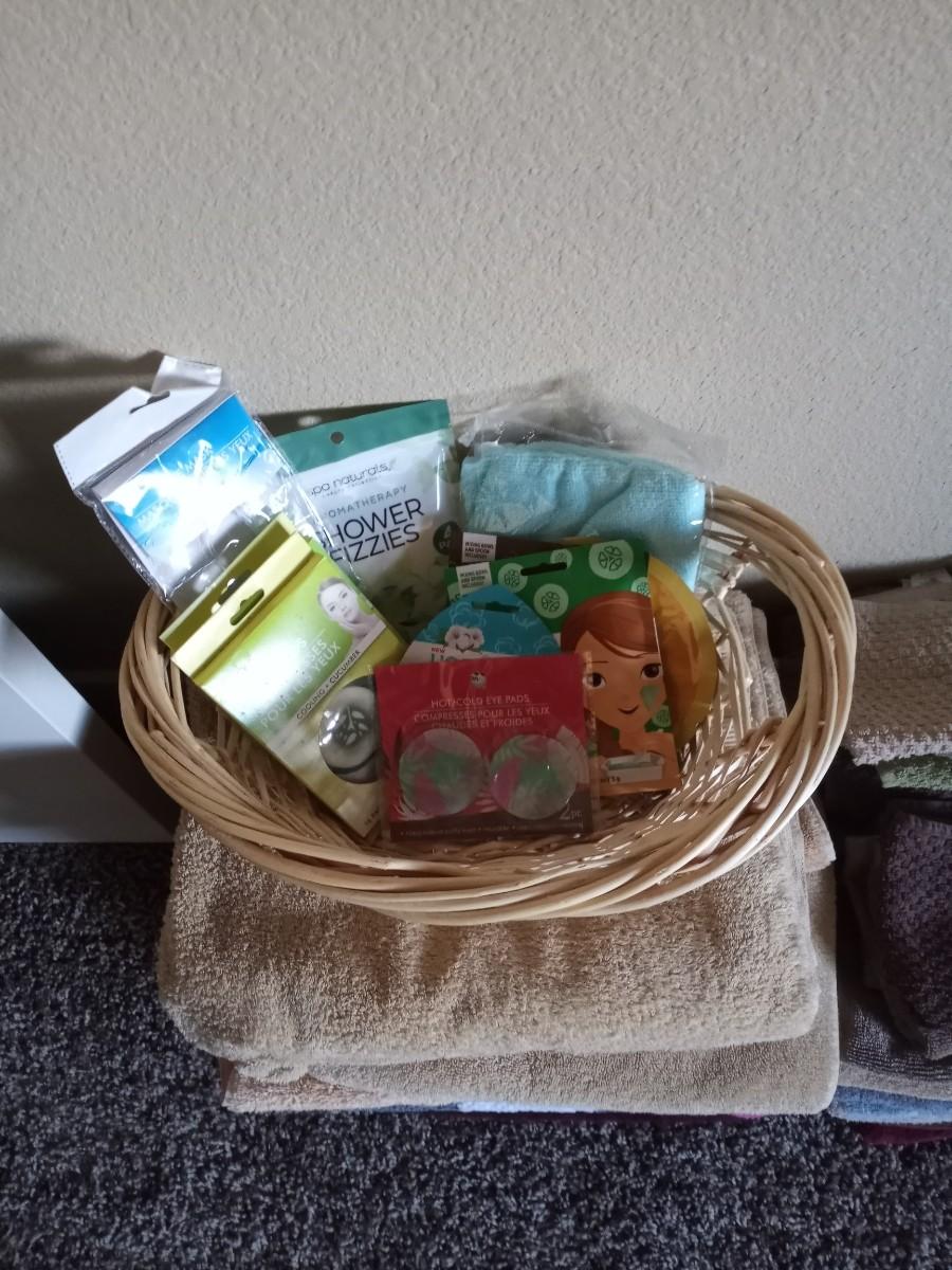 BATH & HAND TOWELS-WASH CLOTHES AND BASKET OF LADIES SKINCARE