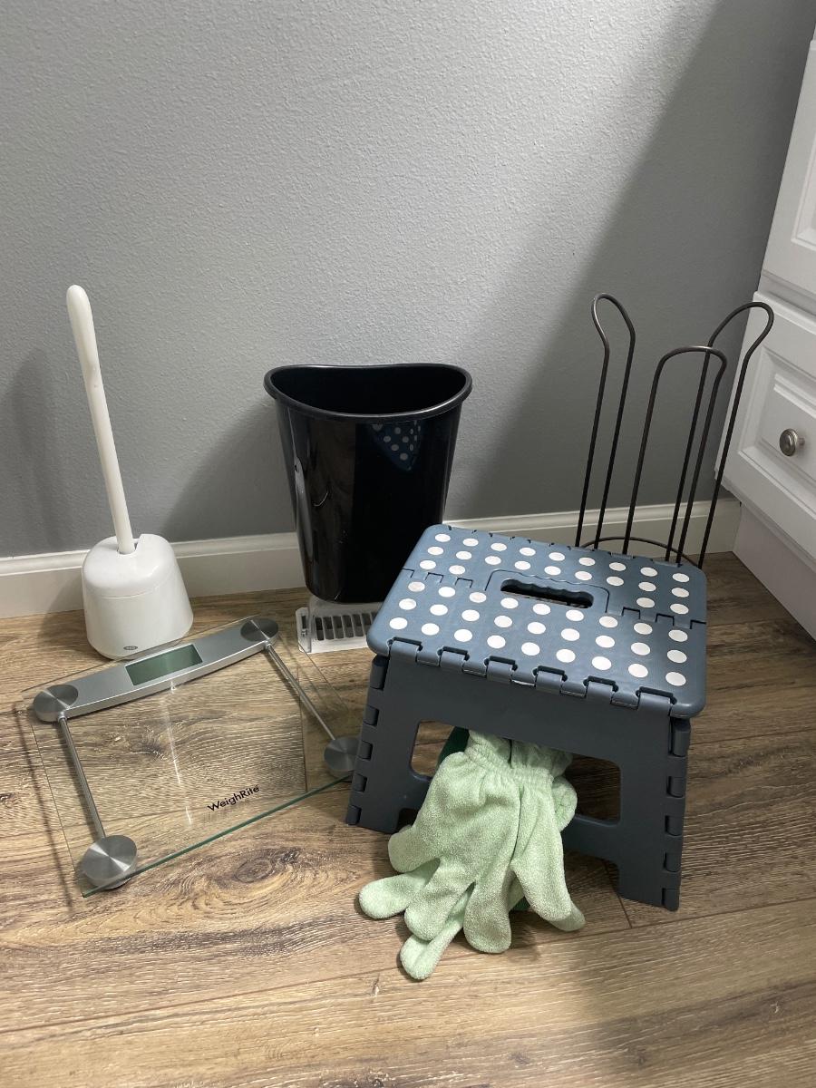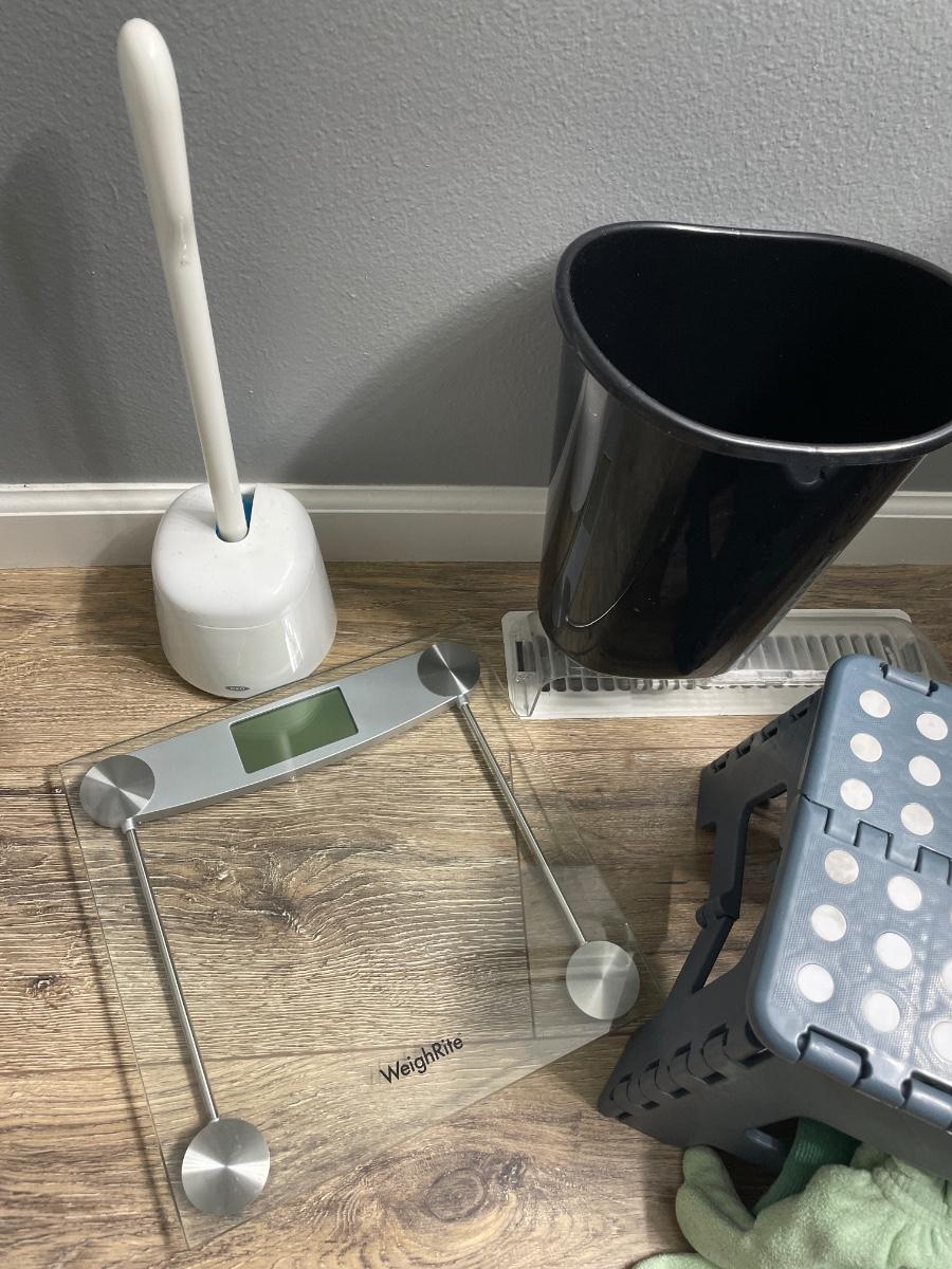 Bath scale, stool, toilet, paper holder, etc.