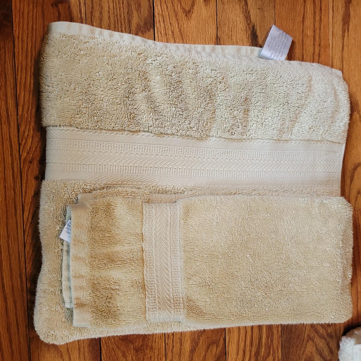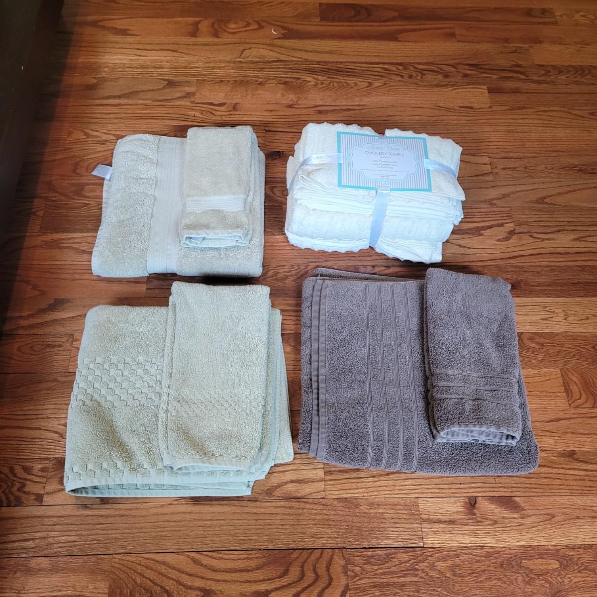 Large and small hand towels in addition to a new, unused set of bath and hand towels and wash cloths. Shipping available.