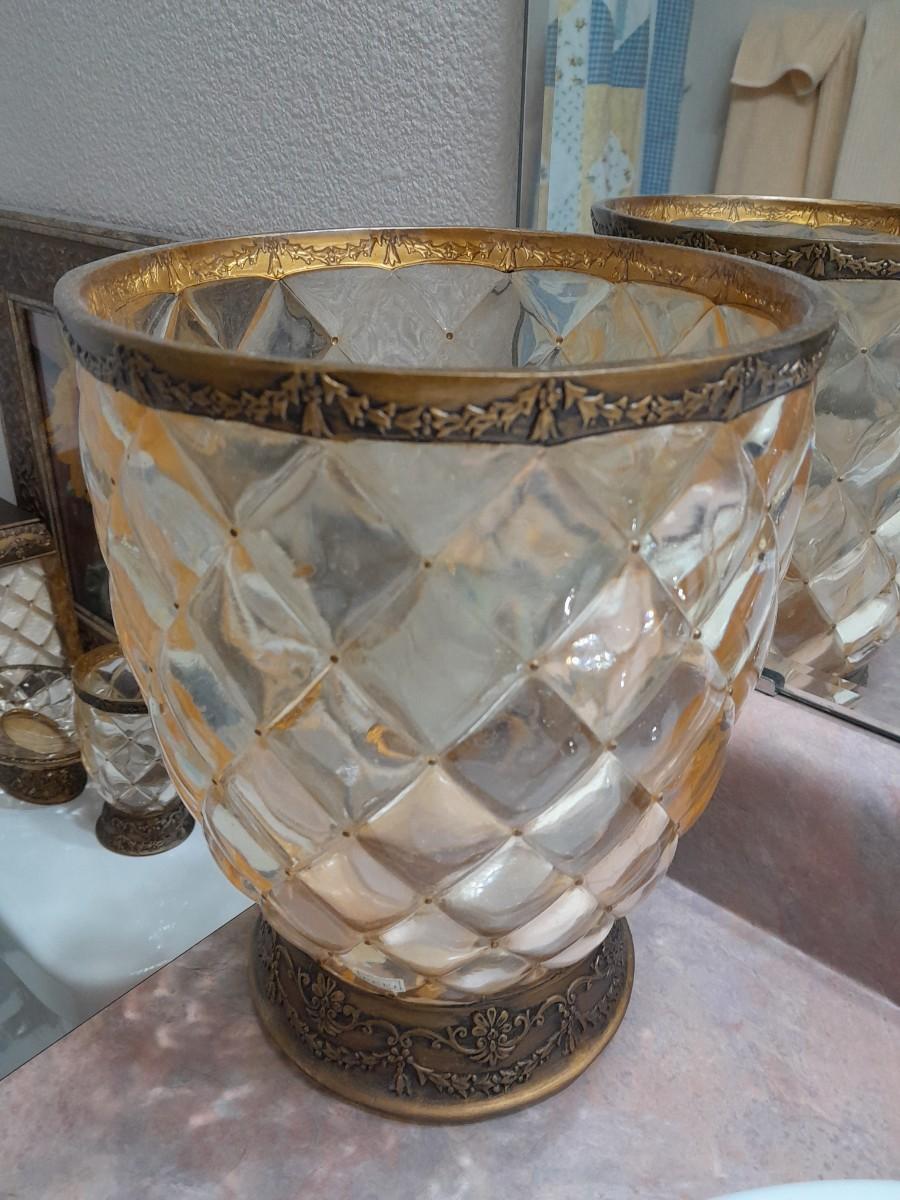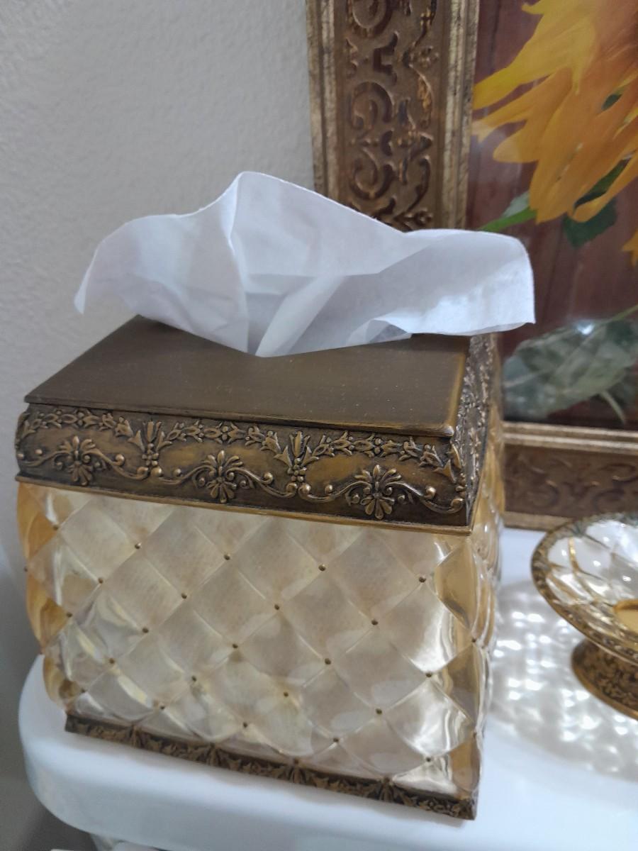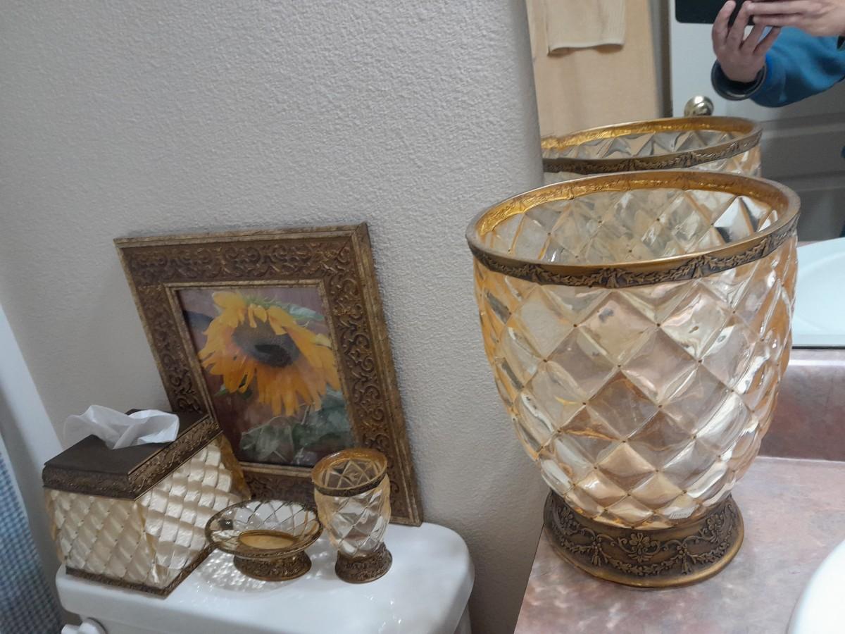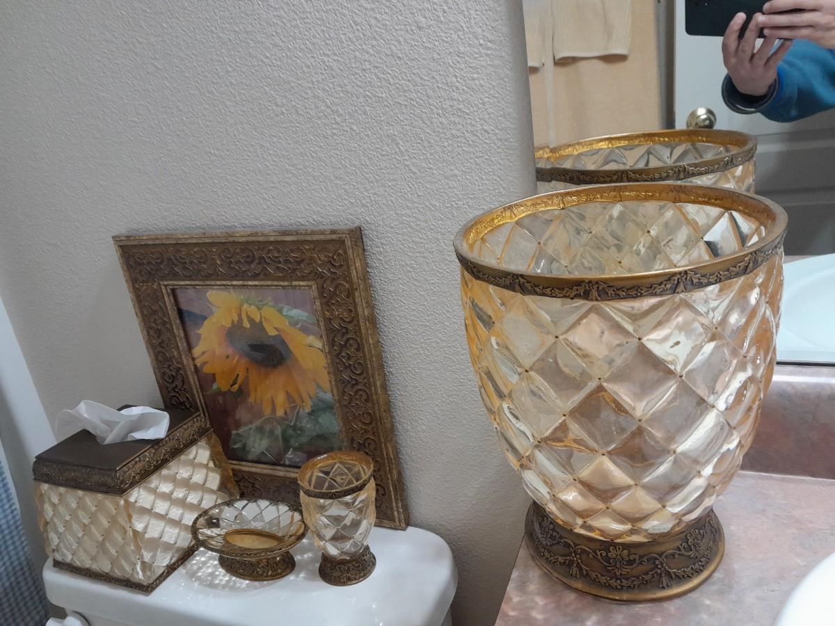 THICK PLASTIC WASTE CAN, SOAP DISH, KLEENEX BOX, CUP, SUNFLOWER PICTURE