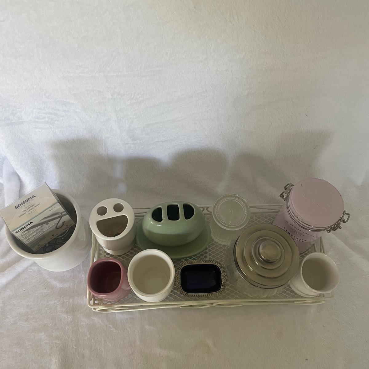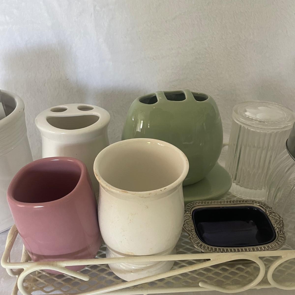 Variety of bathroom accessories. All in good condition. Different uses and colors.