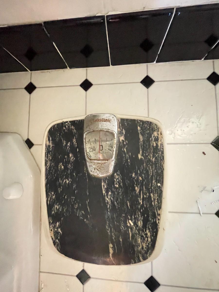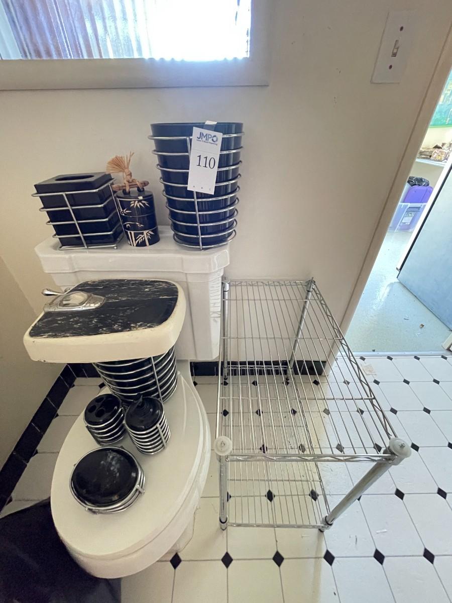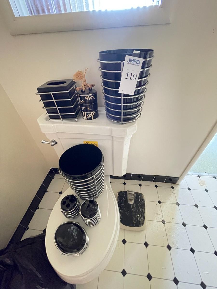 Black and Chrome bath set. Includes scale, not tested, and short chrome rack