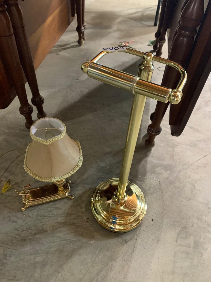 Bathroom Brass Toilet Paper Dispenser & Small Lamp