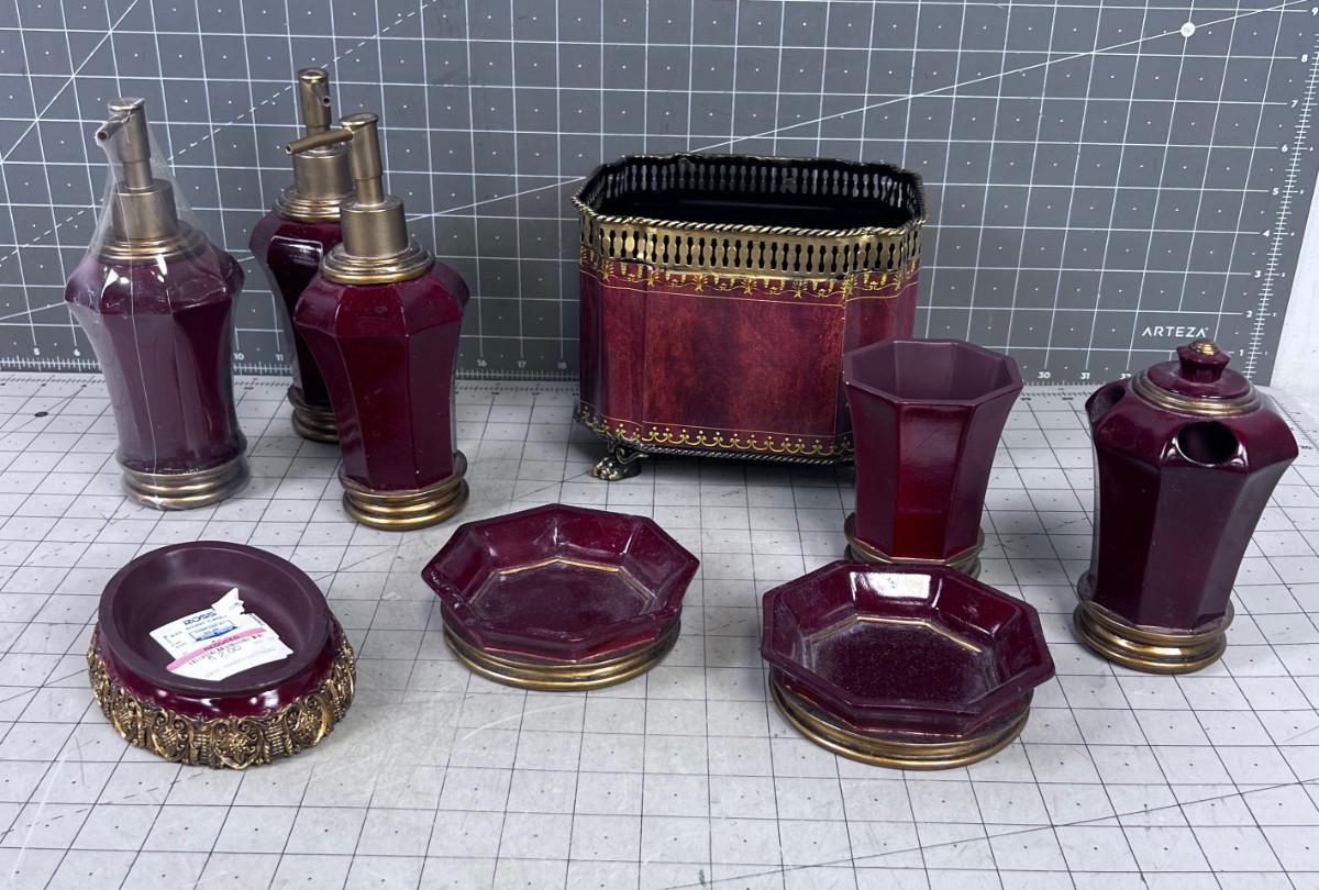 Bathroom Décor / Dispensers Dark Red and Gold FANCY