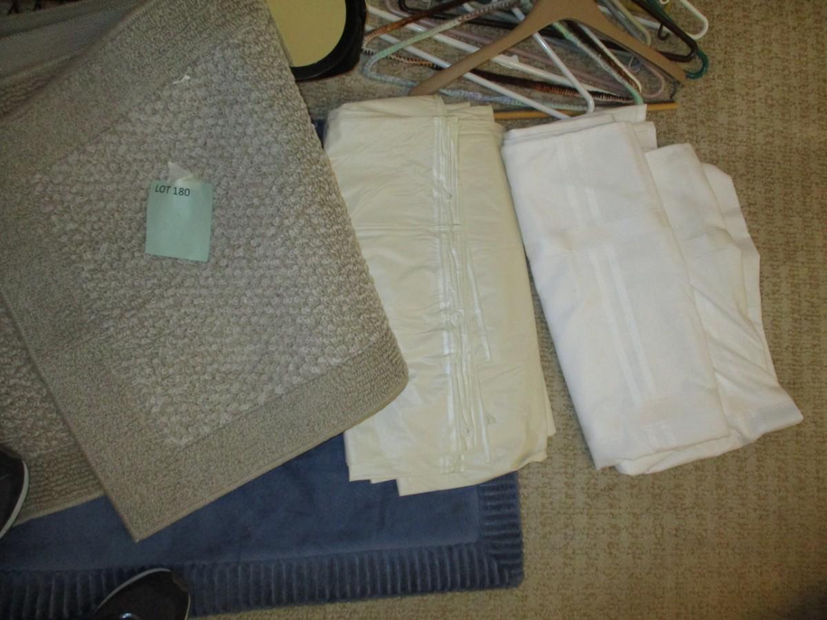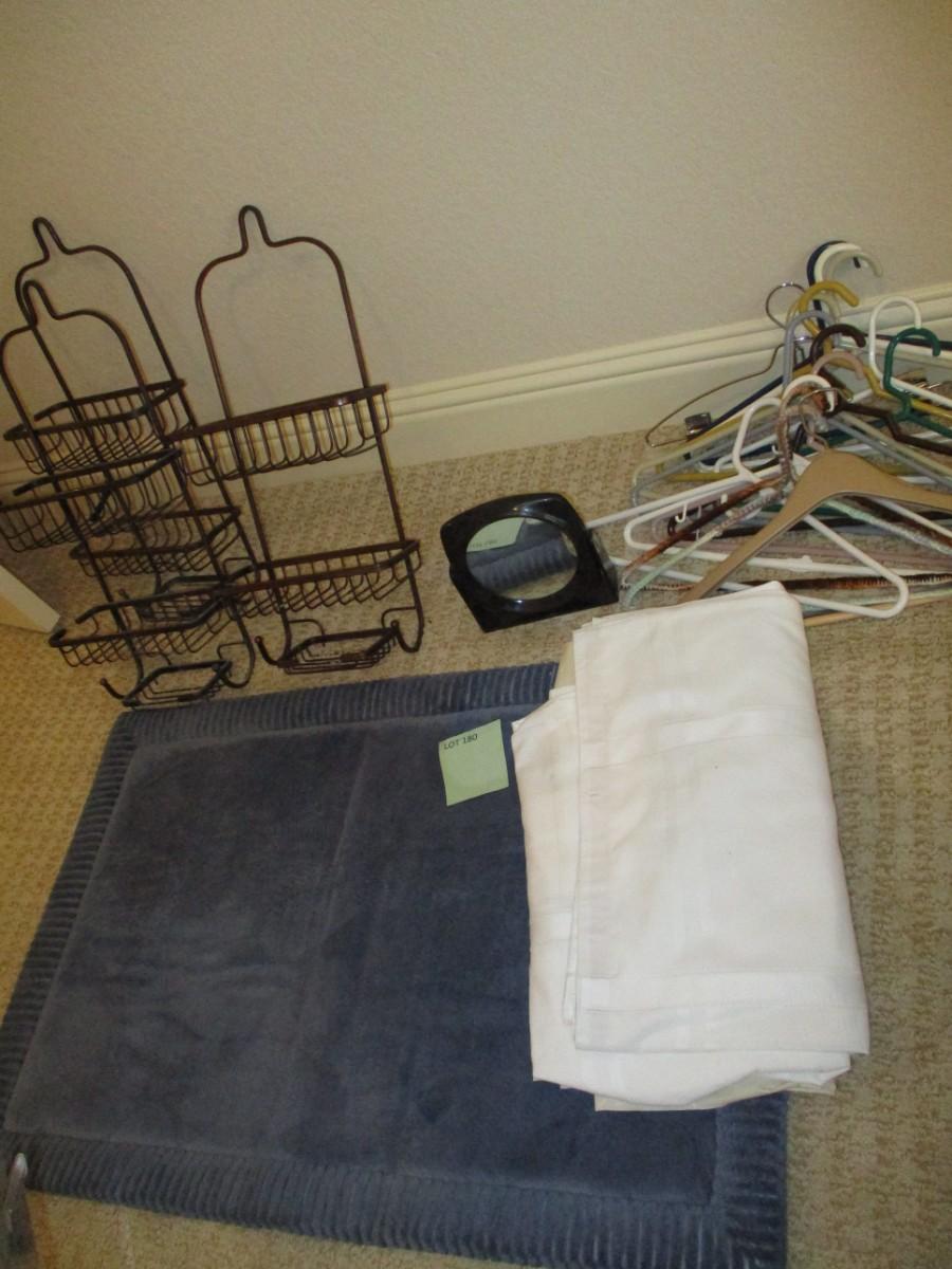 2 Shower Caddy's. Hangers, 3 mats. 2 Shower curtains & Liners. Makeup mirror.