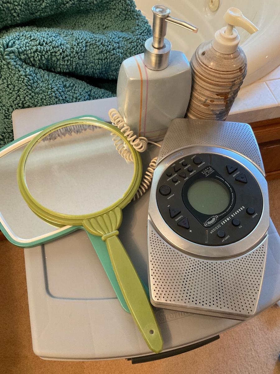 Includes shower proof radio and mirrors
