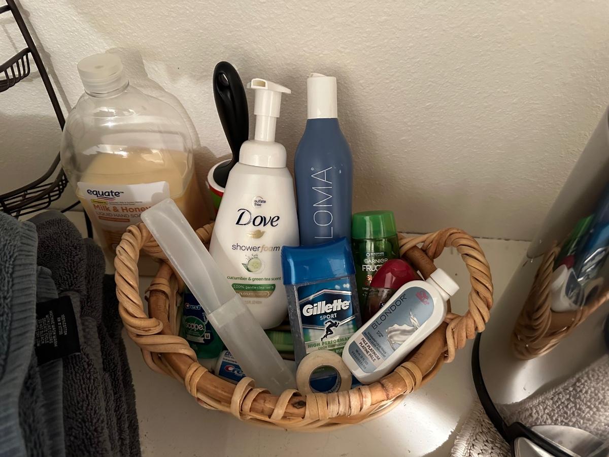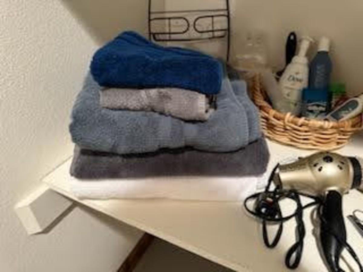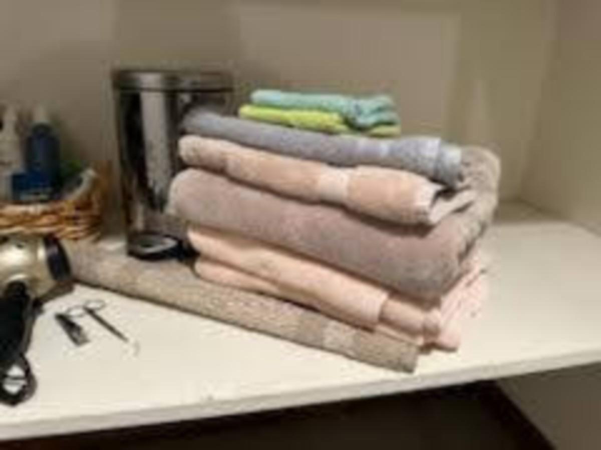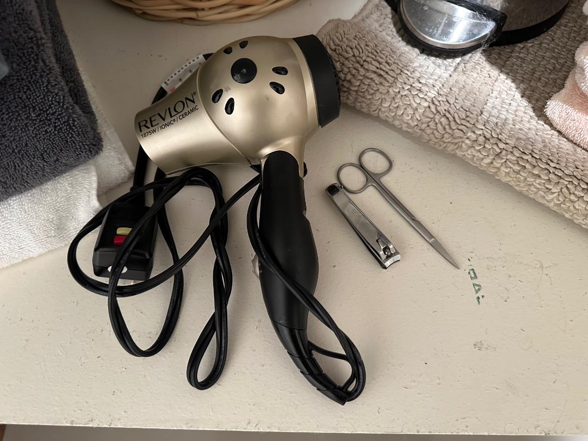 VARIOUS TOWELS, STEP WASTE CAN, HAIR DRYER AND MORE