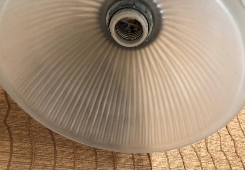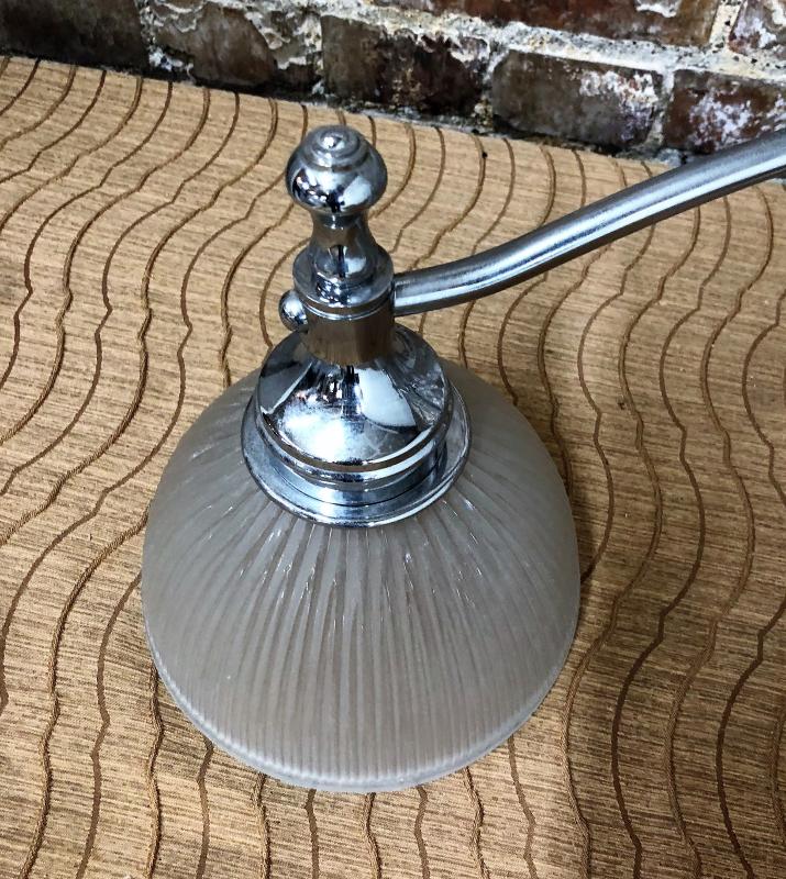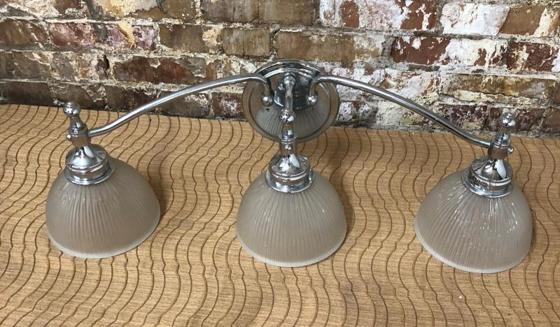 New condition on this bathroom light fixture in chrome...frosted vertical rib glass shades...
