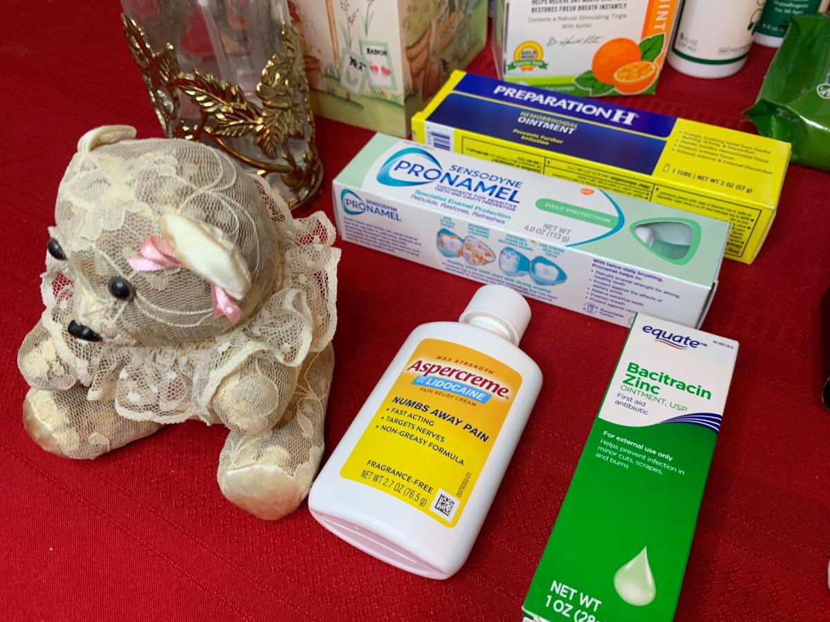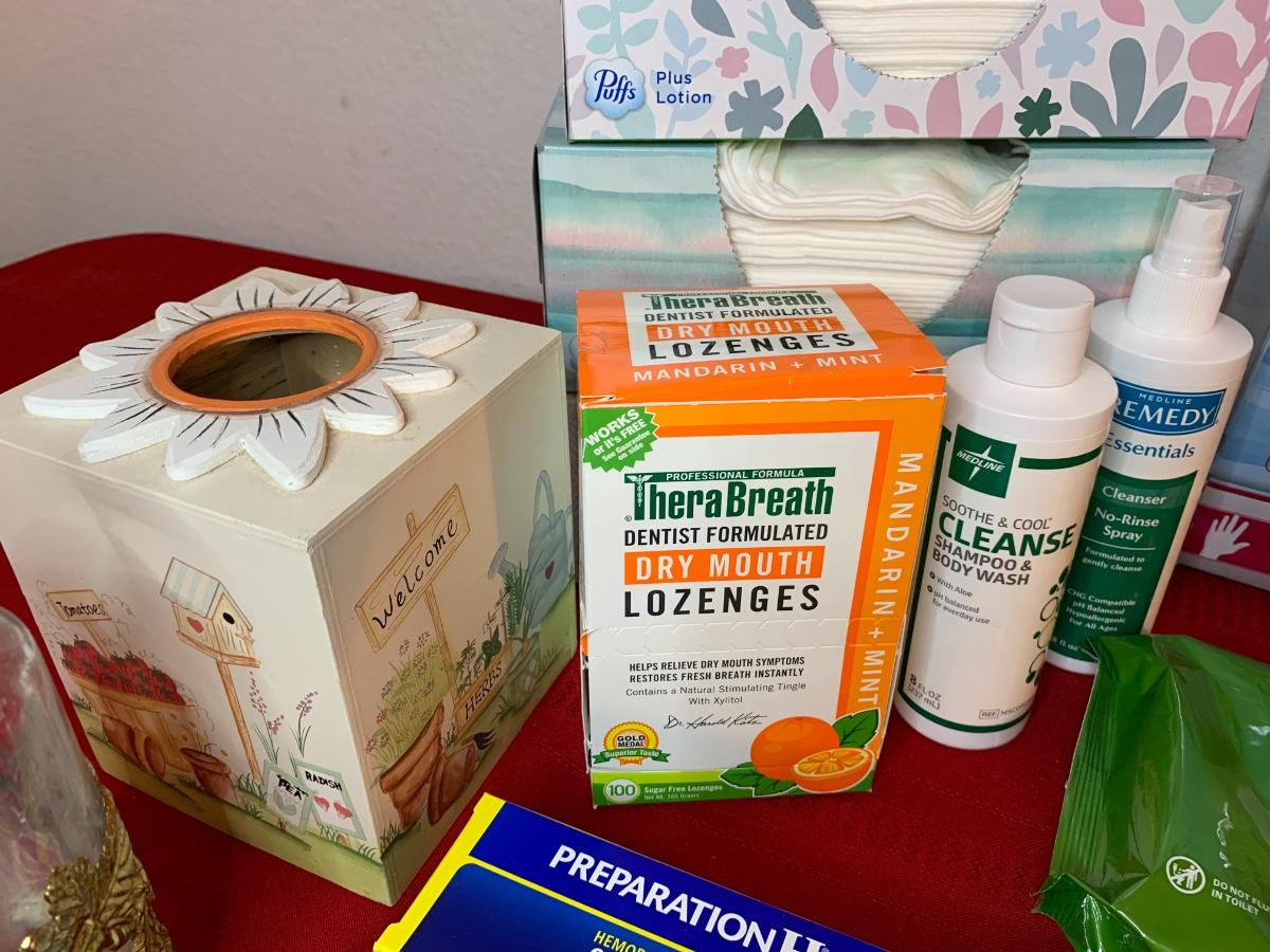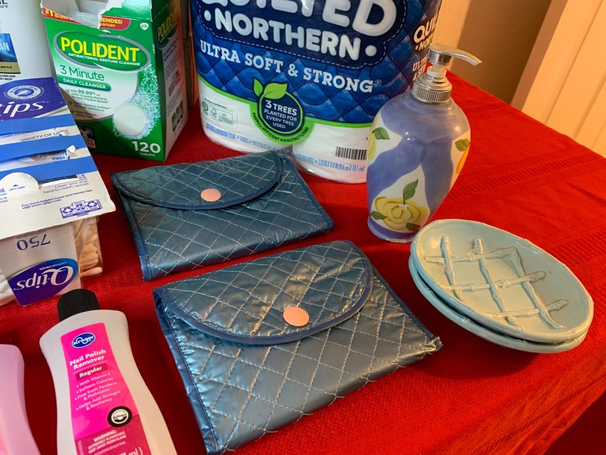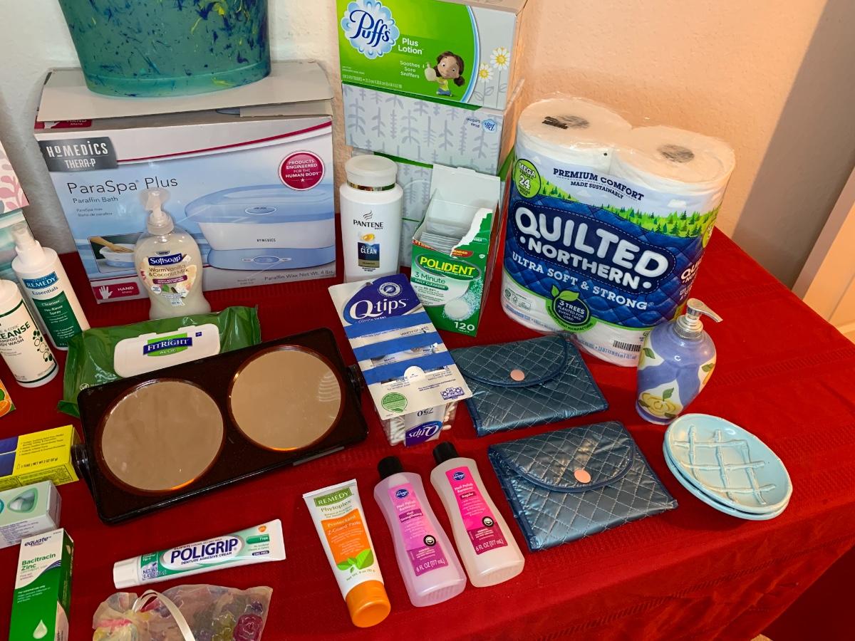 Include Homedics parafin hand bath, make up mirror, trash can, soap dispensers, bath tissue, Kleenex and more!