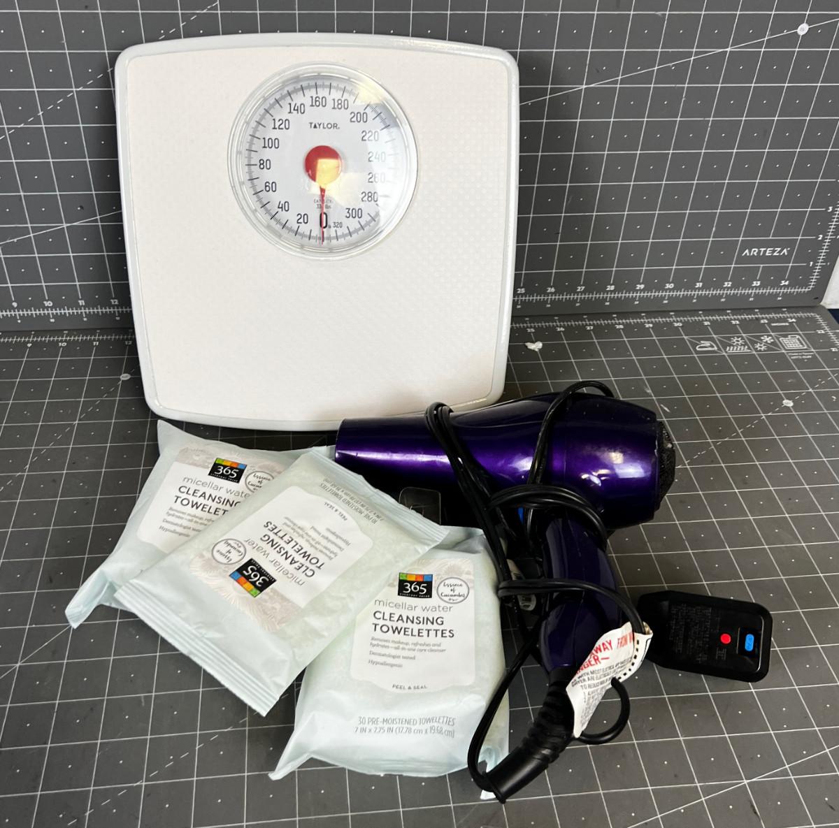 Bathroom Lot: Scale, Blow Dryer, Wipes