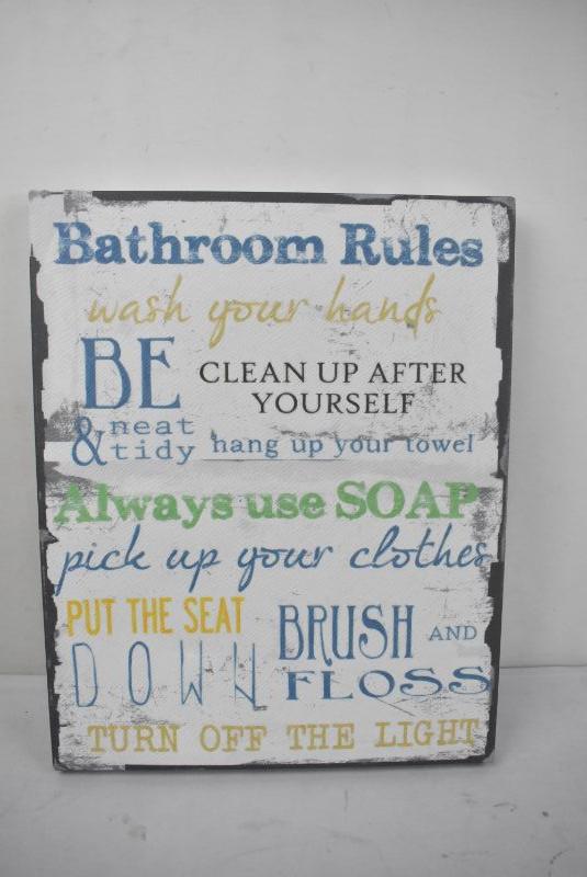 "Bathroom Rules" Canvas Sign 16" x 20" - New