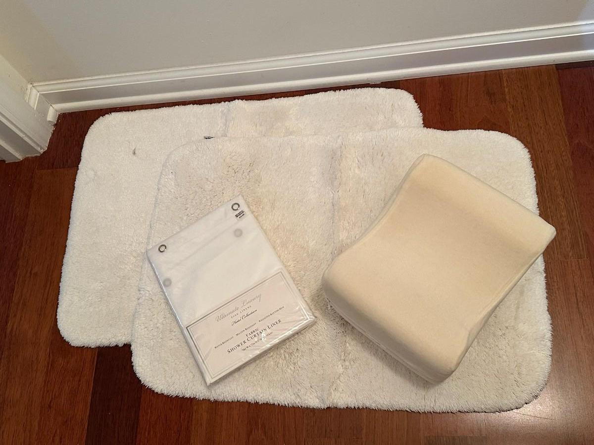 Bathroom Set w Rugs, Pillow, and Shower Liner