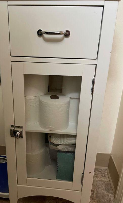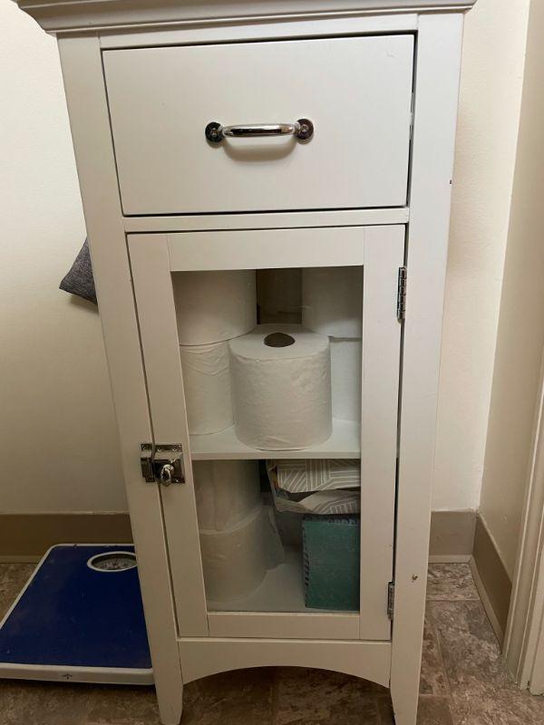 White Bathroom Storage Unit with Drawer and Shelf with Glass Door 32"T X 15"W X13"D