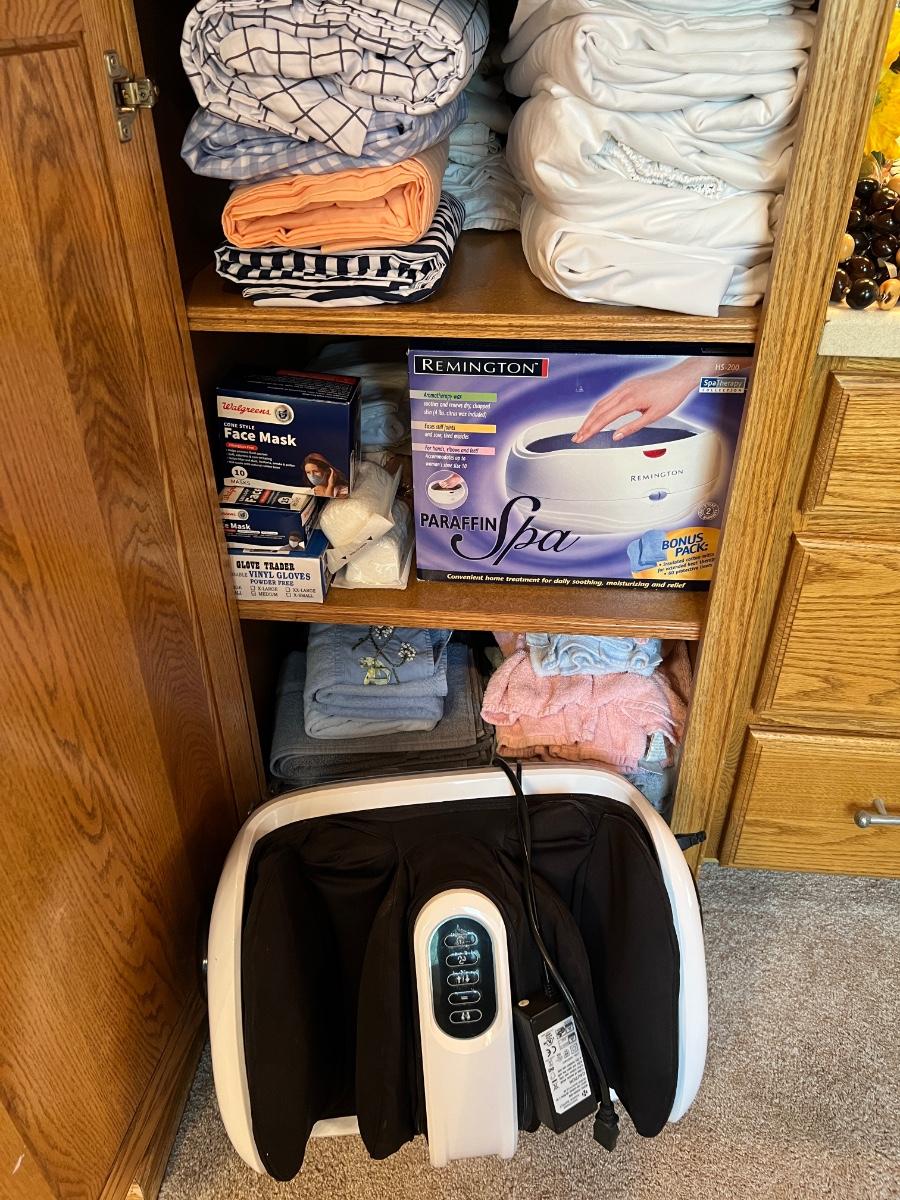 Collection of towels, sheets, Paraffin dip, Foot massager as pictured