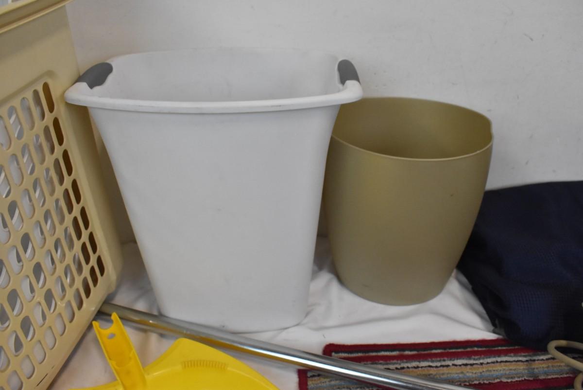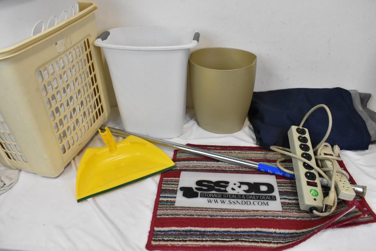 Bathroom/Cleaning Supplies, Laundry Hamper, Shower Curtain, Mats, Power Strips