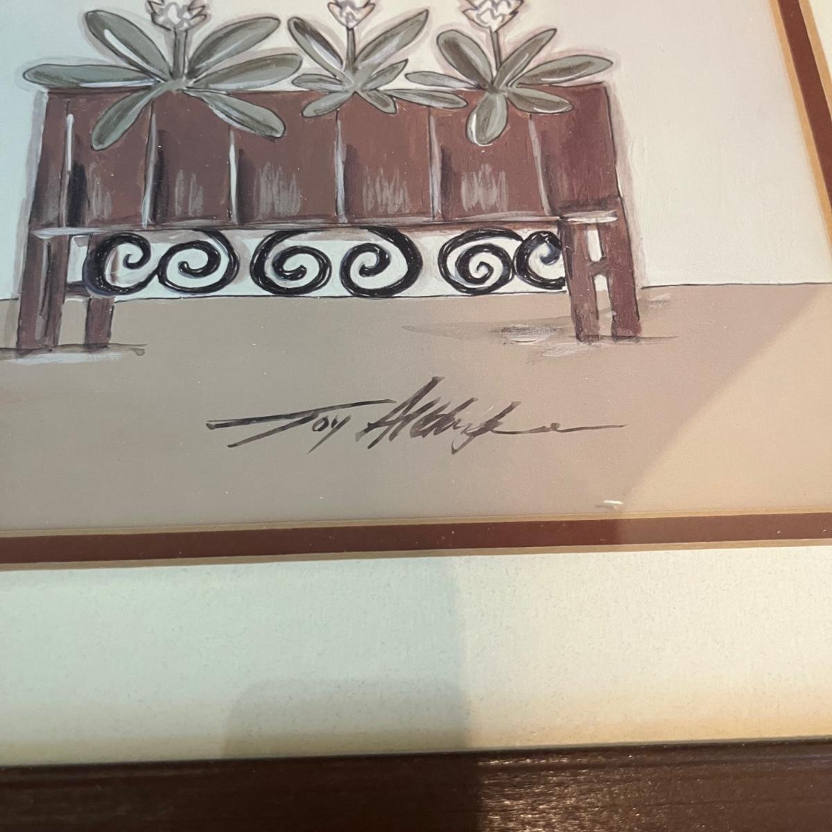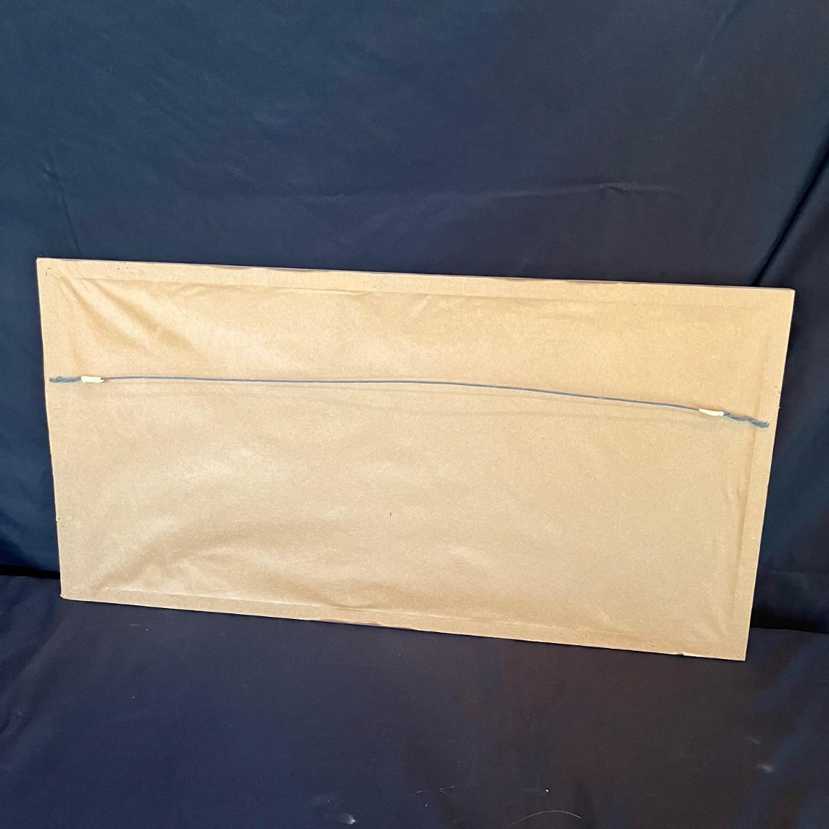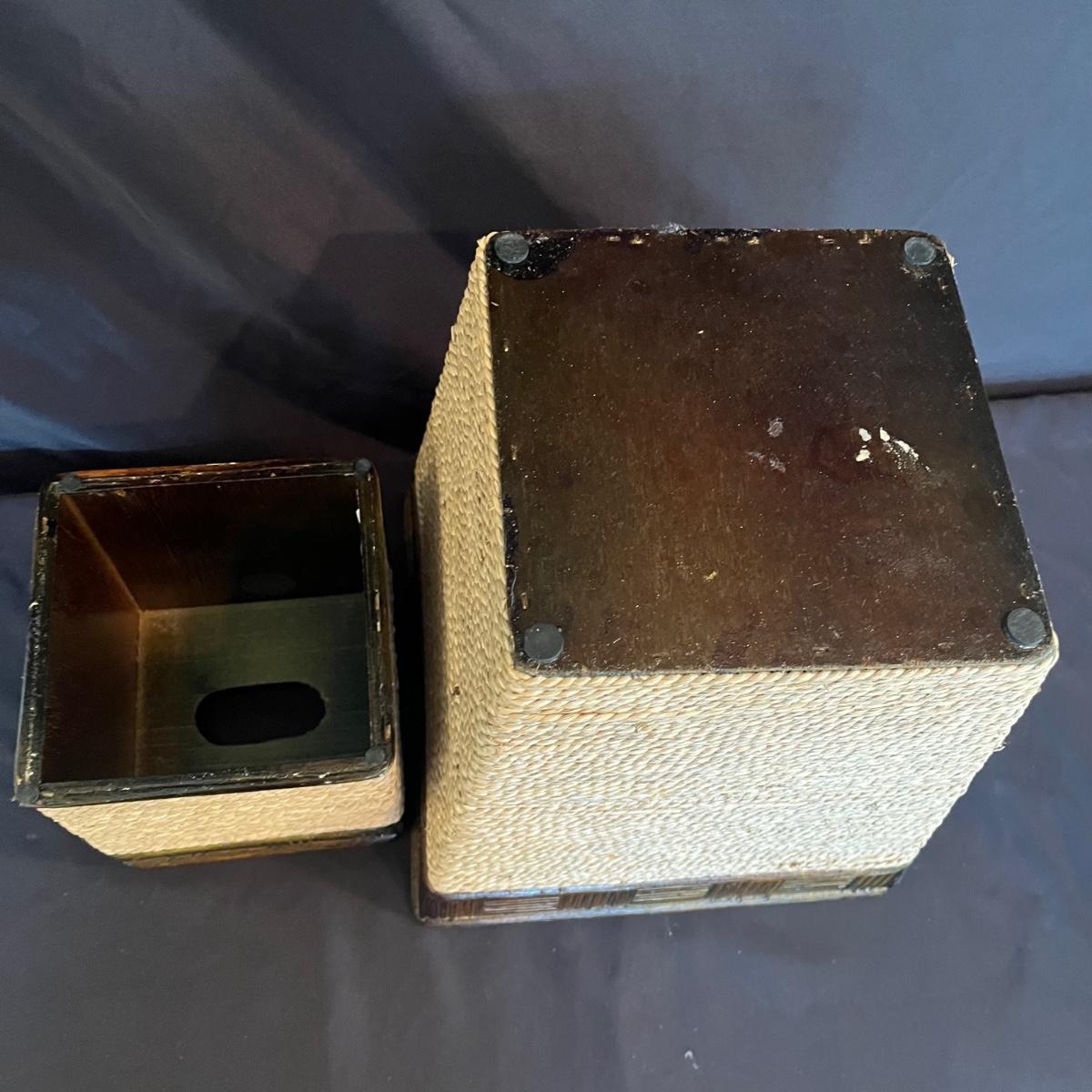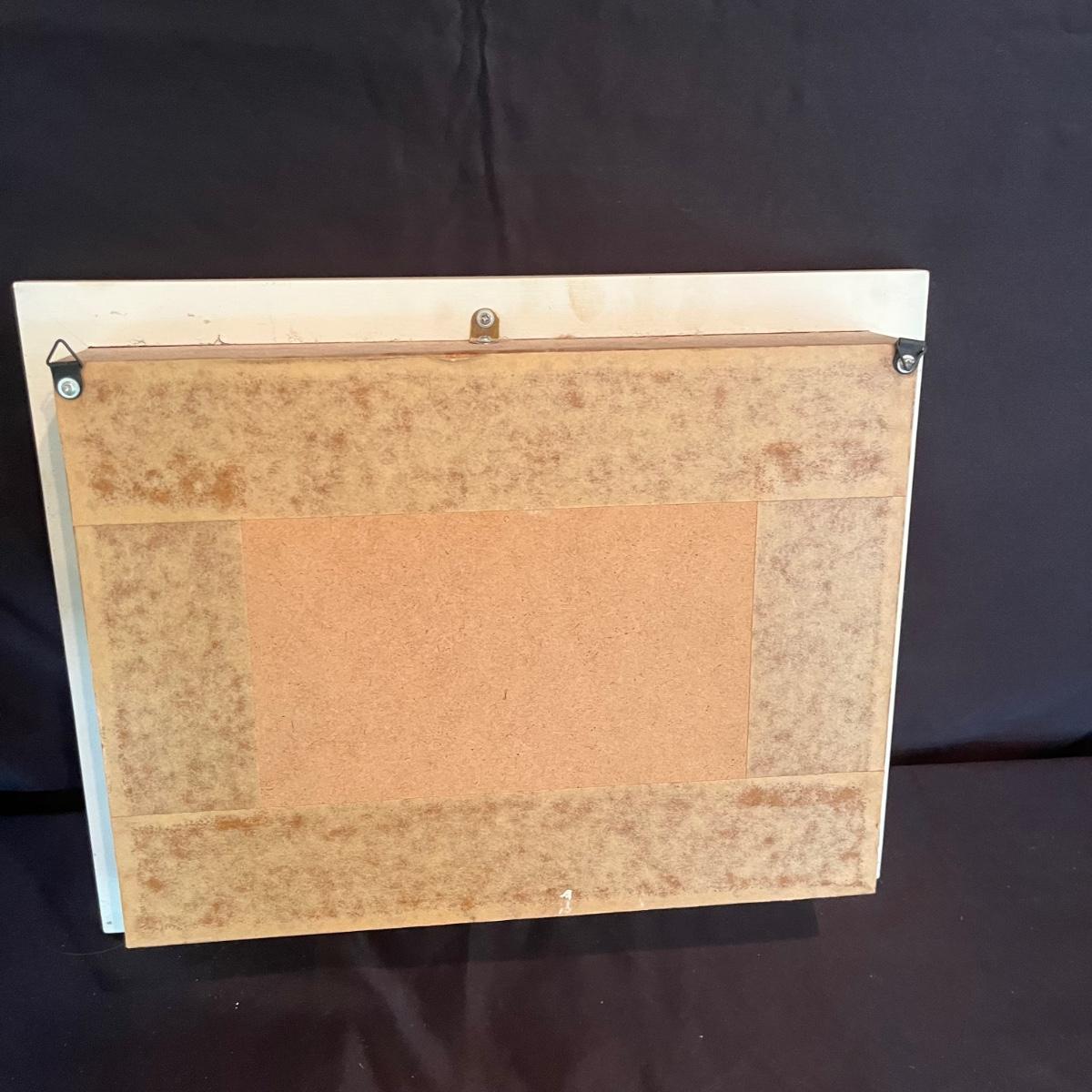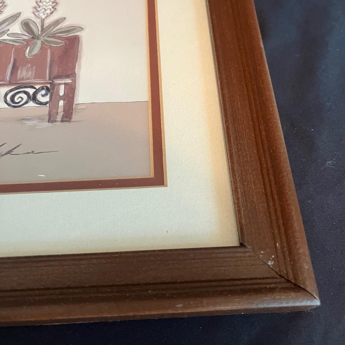 Lot includes 3D bathtub Art, ine piece is in a plastic frame amd thenother is wood, with signed and matted art. Lot also features matching wooden tissue box cover and wastebasket with rope surrounding each piece. Largest frame measures 12” x 24”.