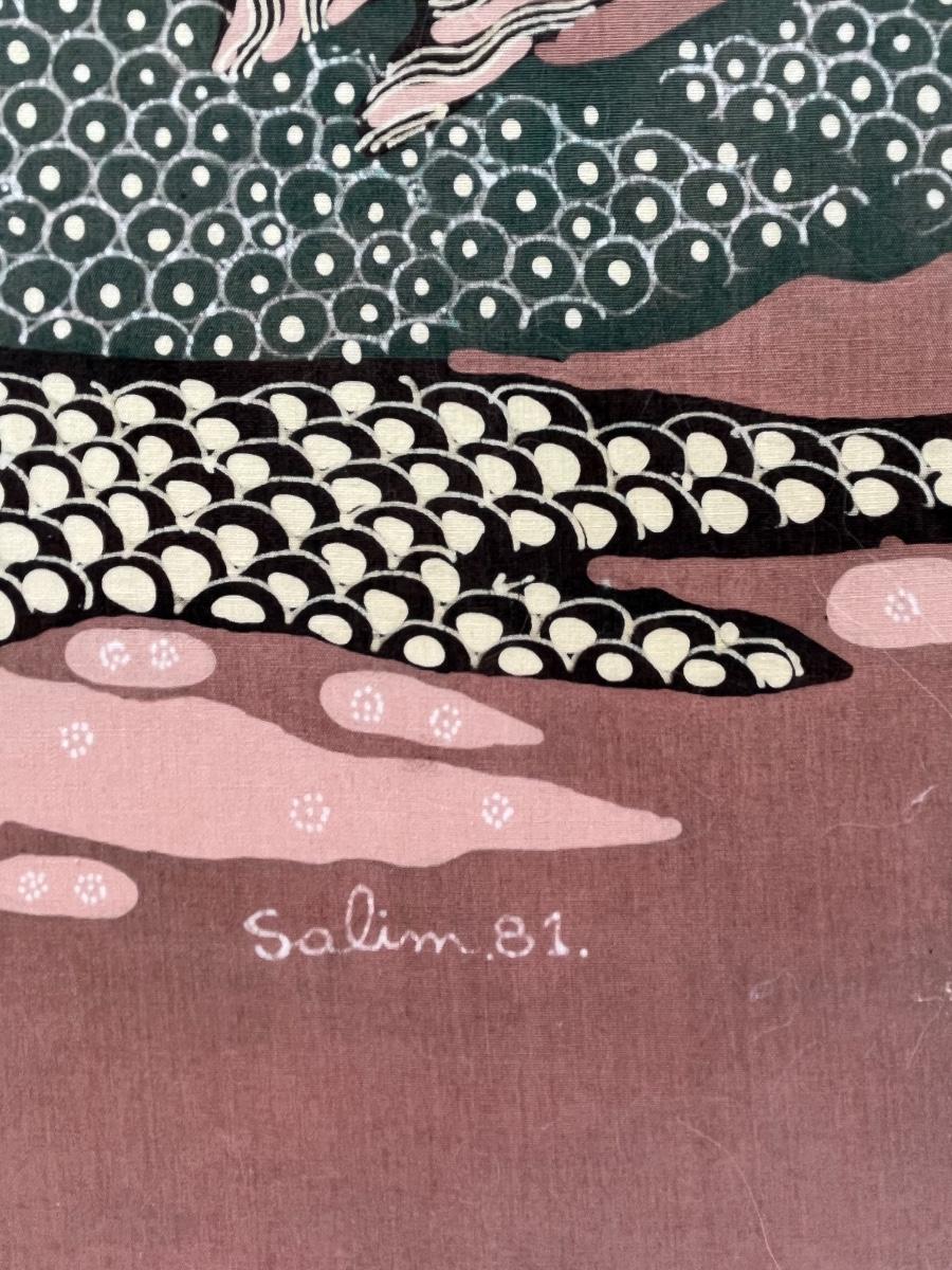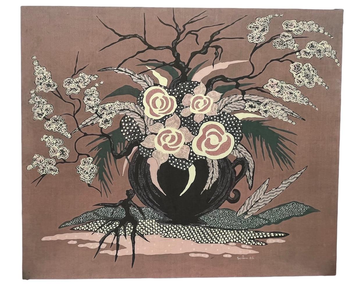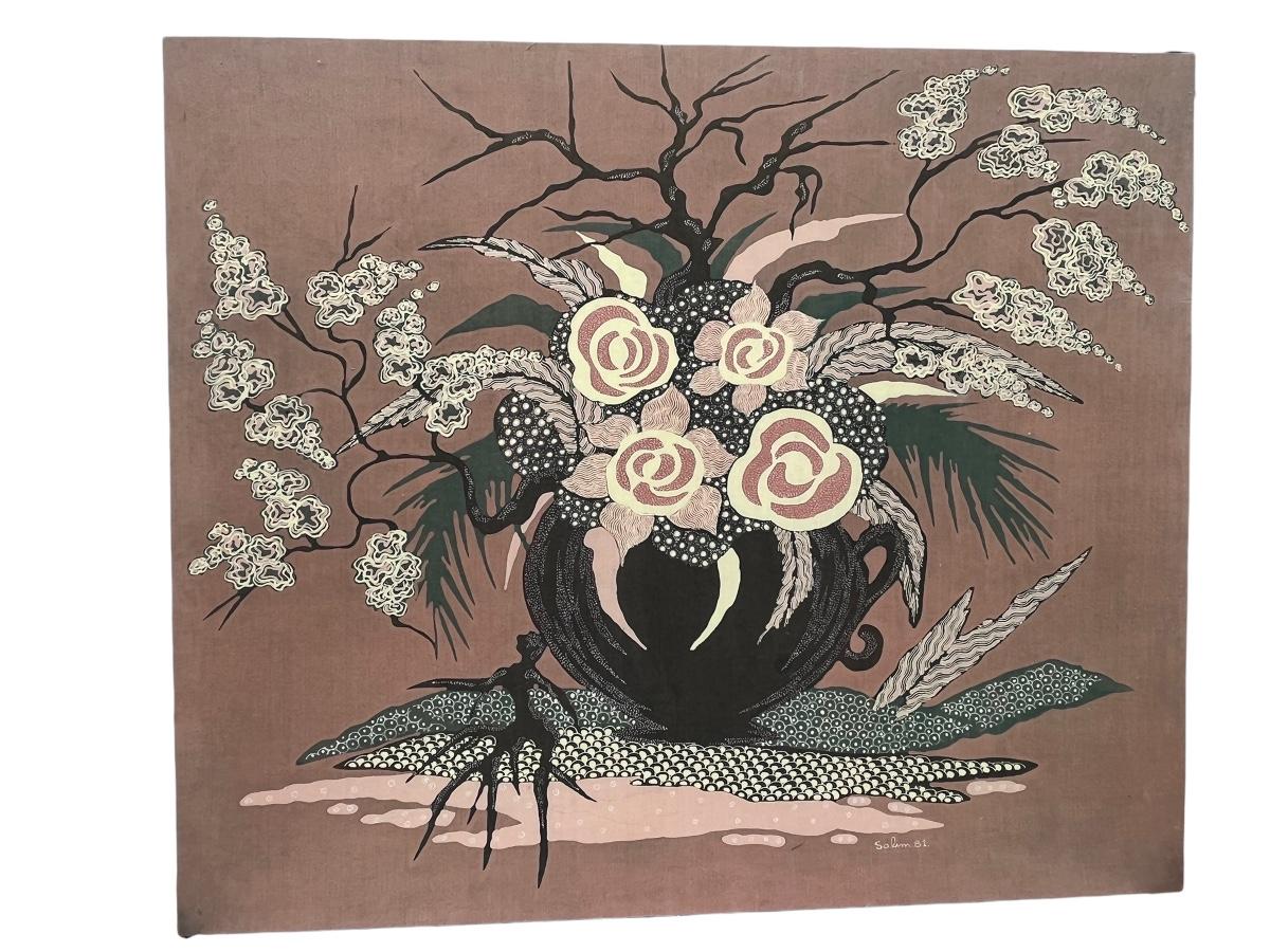 Batik Flower Arrangement (On Cloth) 36"x31" (Place obtained: Jogjakarta, Indonesia) - Signed Salim, 81