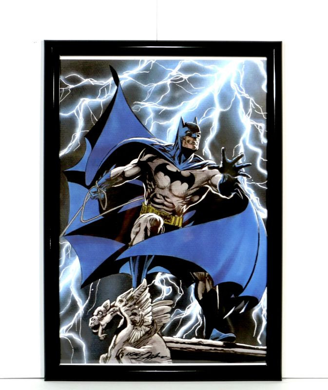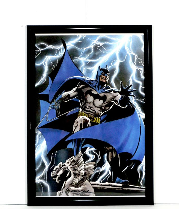Original Comic Art Print hand signed by artist Neal Adams, featuring Neal Adams art for BATMAN Dark Knight - JLA Superhero (DC Comics). High quality art print in large size 13" x 19", on high quality heavy stock poster paper, this piece comes Framed into black frame with clear plexi front, frame 15" x 21", ships flat in safe packaging - Collector's Item!