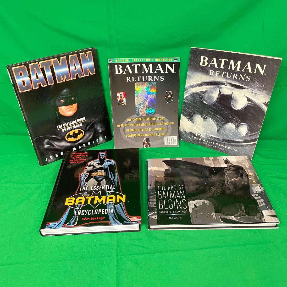 Two official move books: a hardcover Batman and paperback Batman Returns. Lot includes hardcovers The Essential Batman Encyclopedia and The Art of Batman Begins Shadows of the Dark Knight and an Official Collector’s Magazine Batman Returns with holographic cover. See images. Items are sold as-is. No returns or refunds. Please bid accordingly.