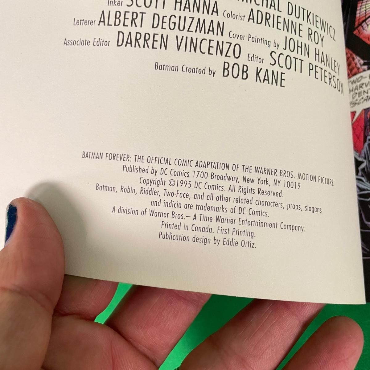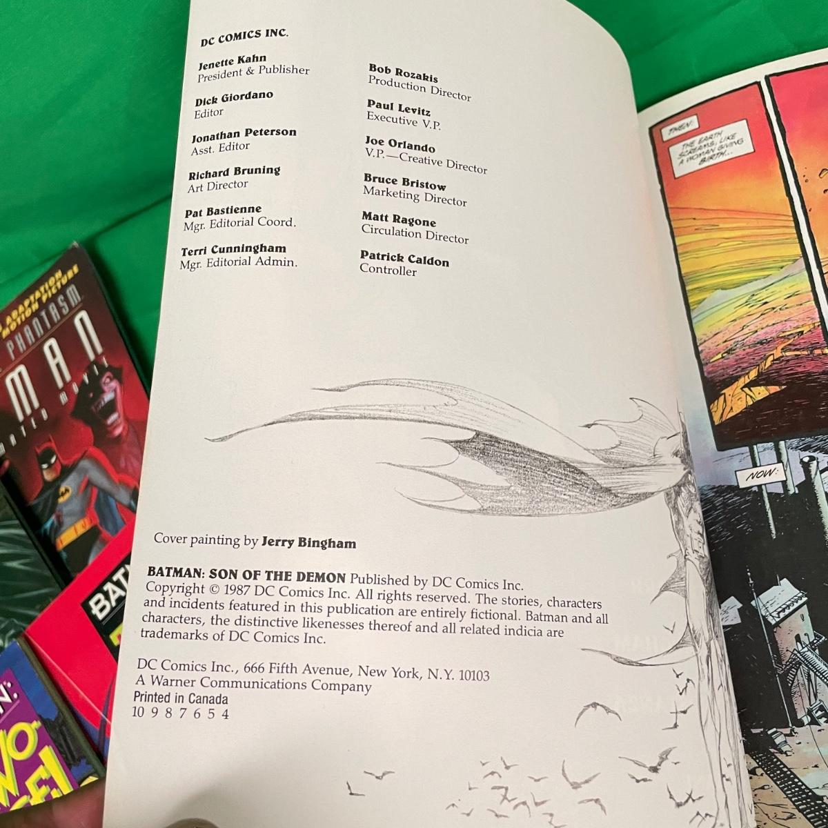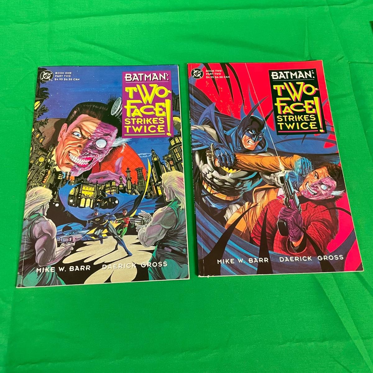 Three official comic adaptations for Batman, Batman Forever and Batman The Animated Movie. Lot also includes graphic novels Batman Son of the Demon and books one and two of Two Face Strikes Twice. See images. Items are sold as-is. No returns or refunds. Please bid accordingly.