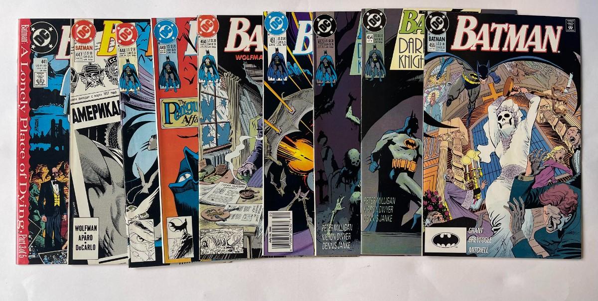 Batman #447-451: These issues explore the aftermath of major events and Batman's ongoing struggles with the criminal underworld. With storylines such as "The Long Halloween" influencing the mood, #447-451 delve into Bruce Wayne’s complex relationships with Gotham's heroes and villains. You’ll find dramatic moments, intense action, and Batman’s relentless pursuit of justice, even as he faces personal challenges and confrontations with iconic foes.
