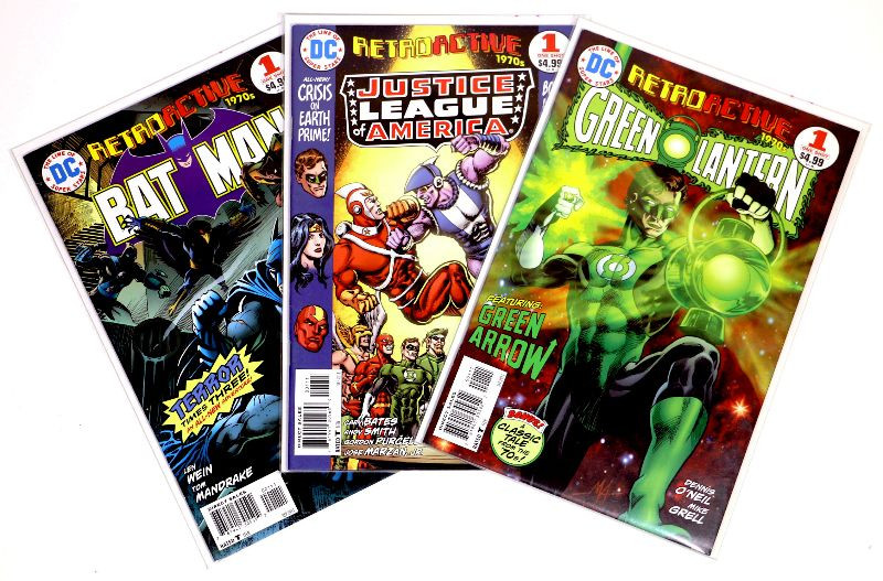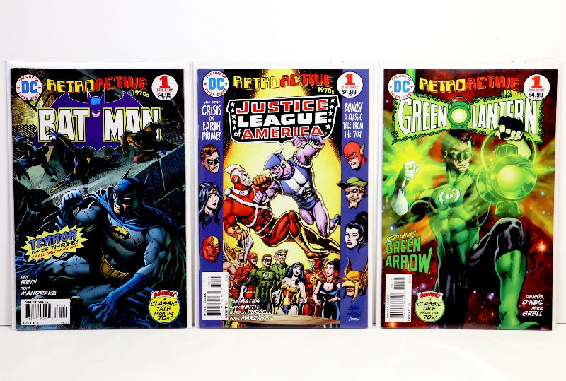 3 Number 1 - one shot comic book issues - DC Comics 2011 Series RETROACTIVE 1970s featuring Batman, Justice League of America and Green Lantern, high grade comic books.