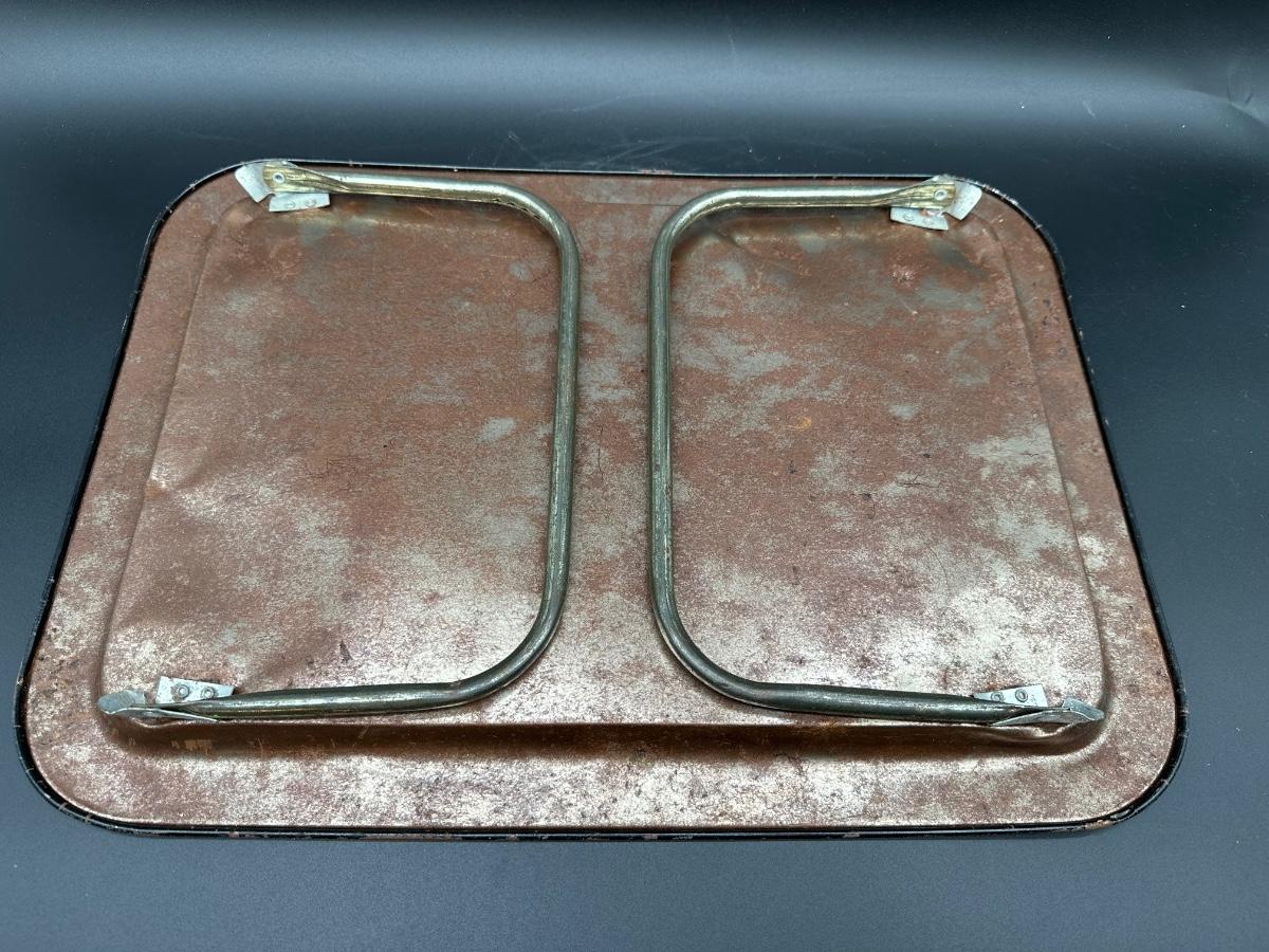 Original Batman Returns metal serving tray from the 1992 film starring Michael Keaton. Features full-color Batman movie artwork with “BATMAN RETURNS” text at top and Batman logos along the bottom edge. Rectangular metal tray with raised rim and fold-down metal handles on the back.