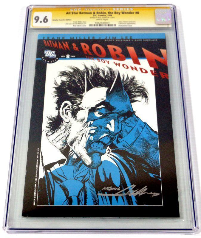 Rare collector's item - Neal Adams hand signed Batman & Robin The Boy Wonder #8 Retailer Incentive Edition Blue Cover Variant CGC Signature Series graded at 9.6 NM+. This book comes from personal collection of Neal Adams - Amazing and Rare comic book in super high grade - must have for any collector!