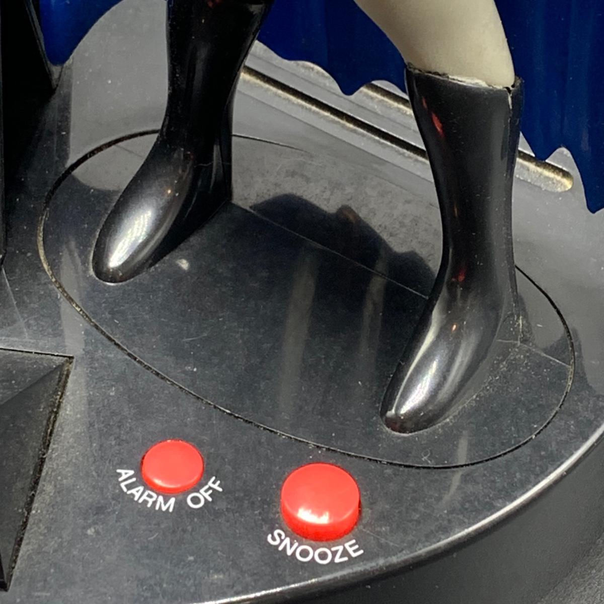 Batman The Animated Series talking alarm clock by Top Banana. Made of plastic and measures approximately 8” x 6” x 8.5”H. Item was not tested as it needs batteries. It is a bit dusty.