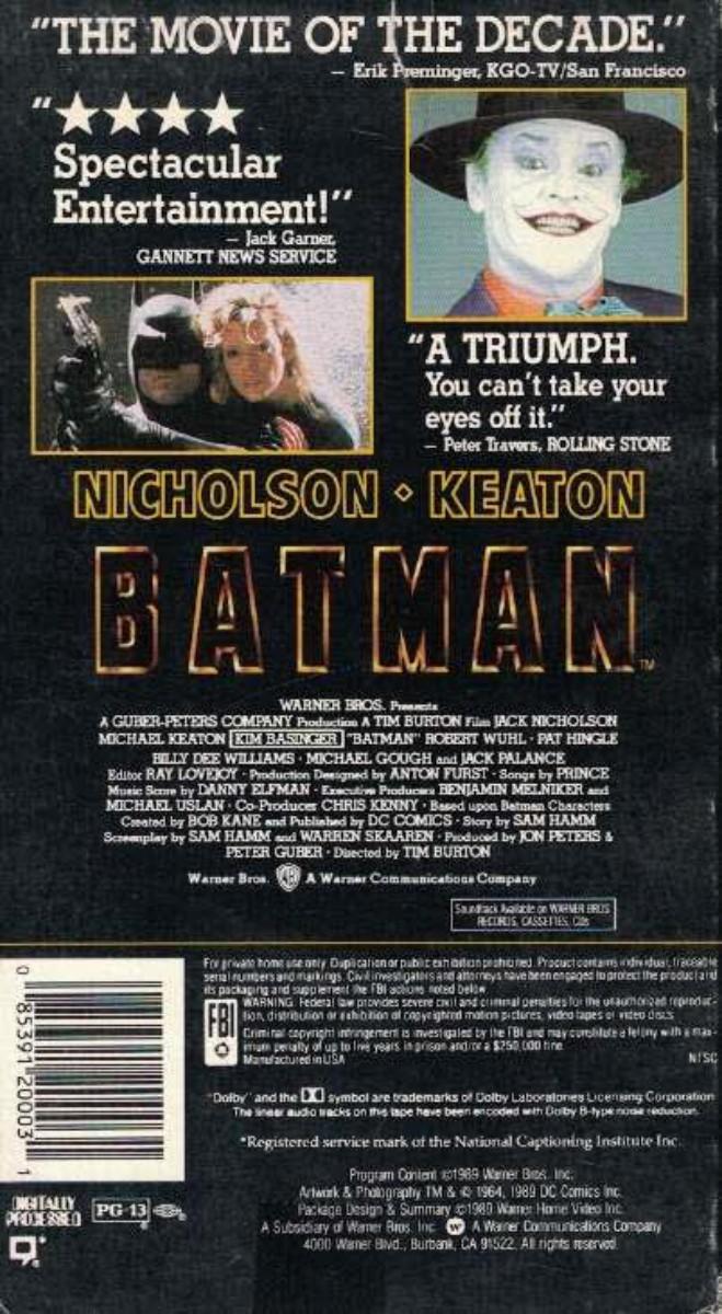 BATMAN w/Nicholson & Keaton VHS movie Hi-Fi