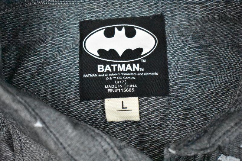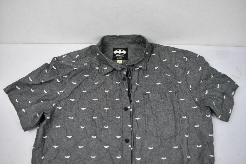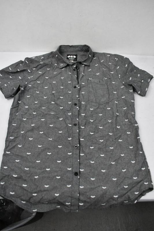 Bats/Batman Shirt, Size Large, Gray with White Bats, Short Sleeve Button Up Shirt