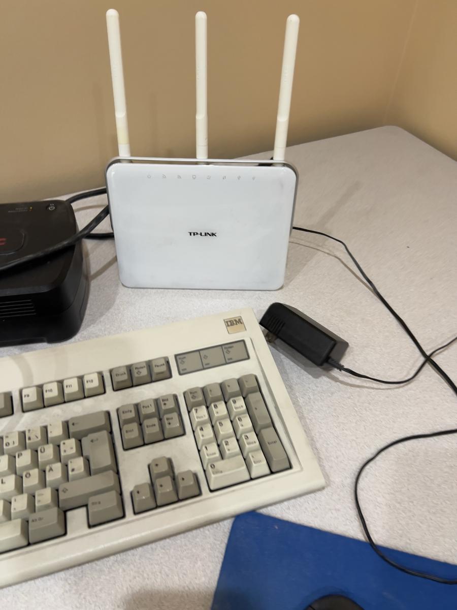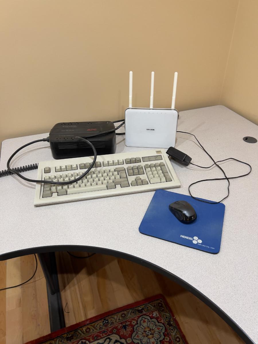 Battery Back Up, Keyboard, Mouse and TP Link Router