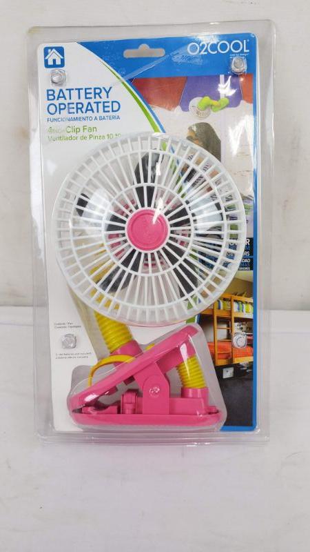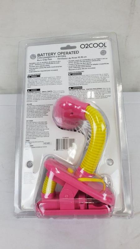 Battery Operated 4 Inch Clip Fan, Pink & Yellow, O2Cool - New