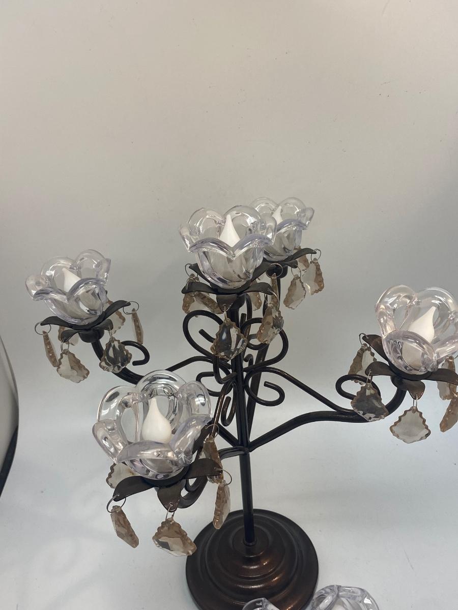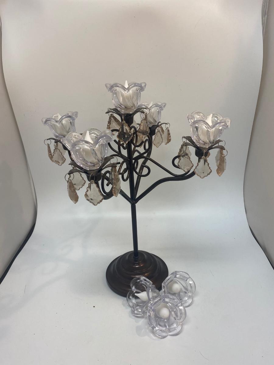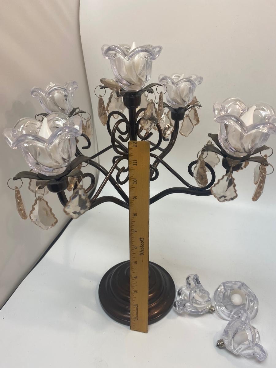 Battery Operated Candelabra 5 Lights with Extras Lights. Untested. Could probably be used with regular candles if wanted. About 15" tall.