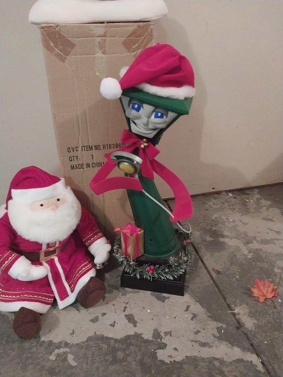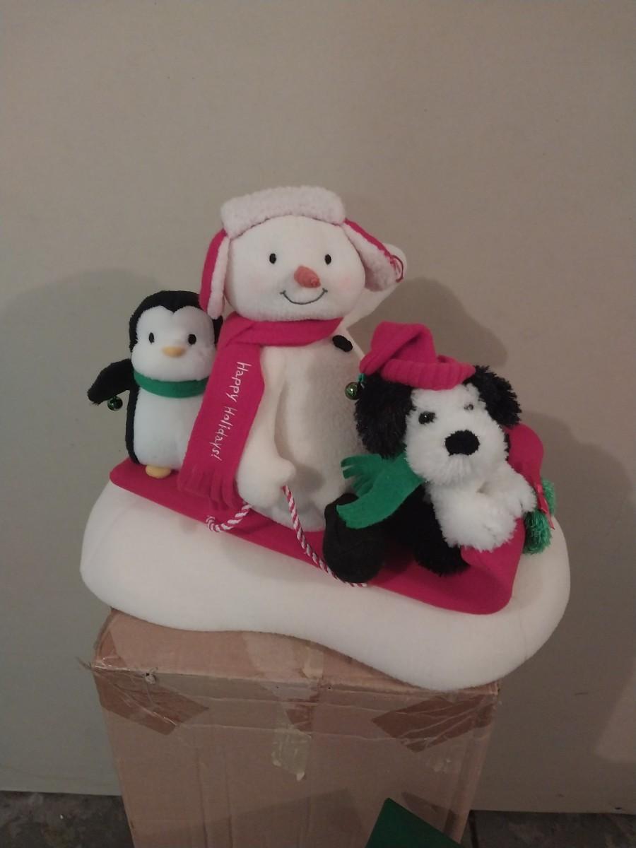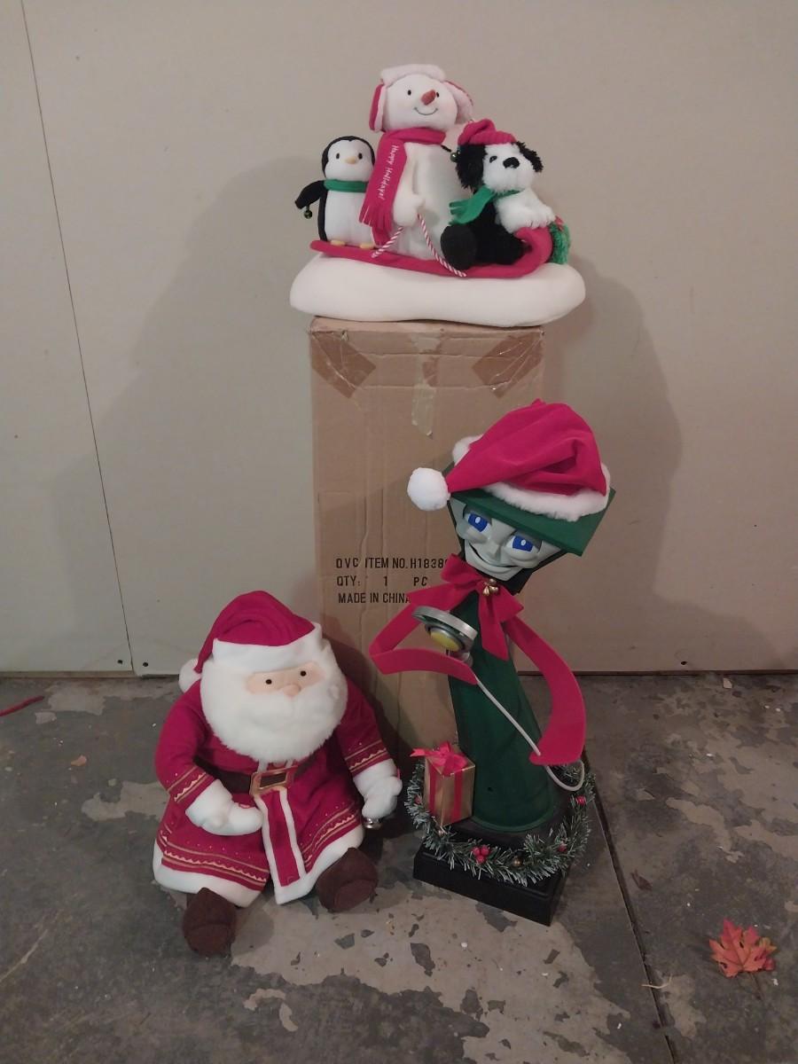 BATTERY OPERATED GRINCH SANTA-SNOWMAN ON SLEIGH AND PLUSH SANTA