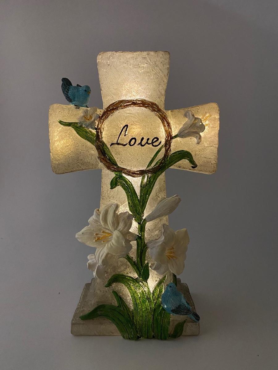 Battery Operated Light Up Love Cross Easter Decor Garden Yard Art