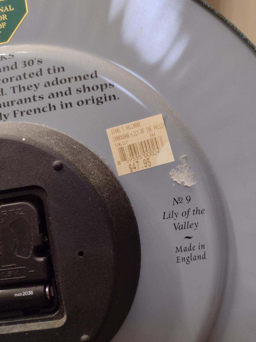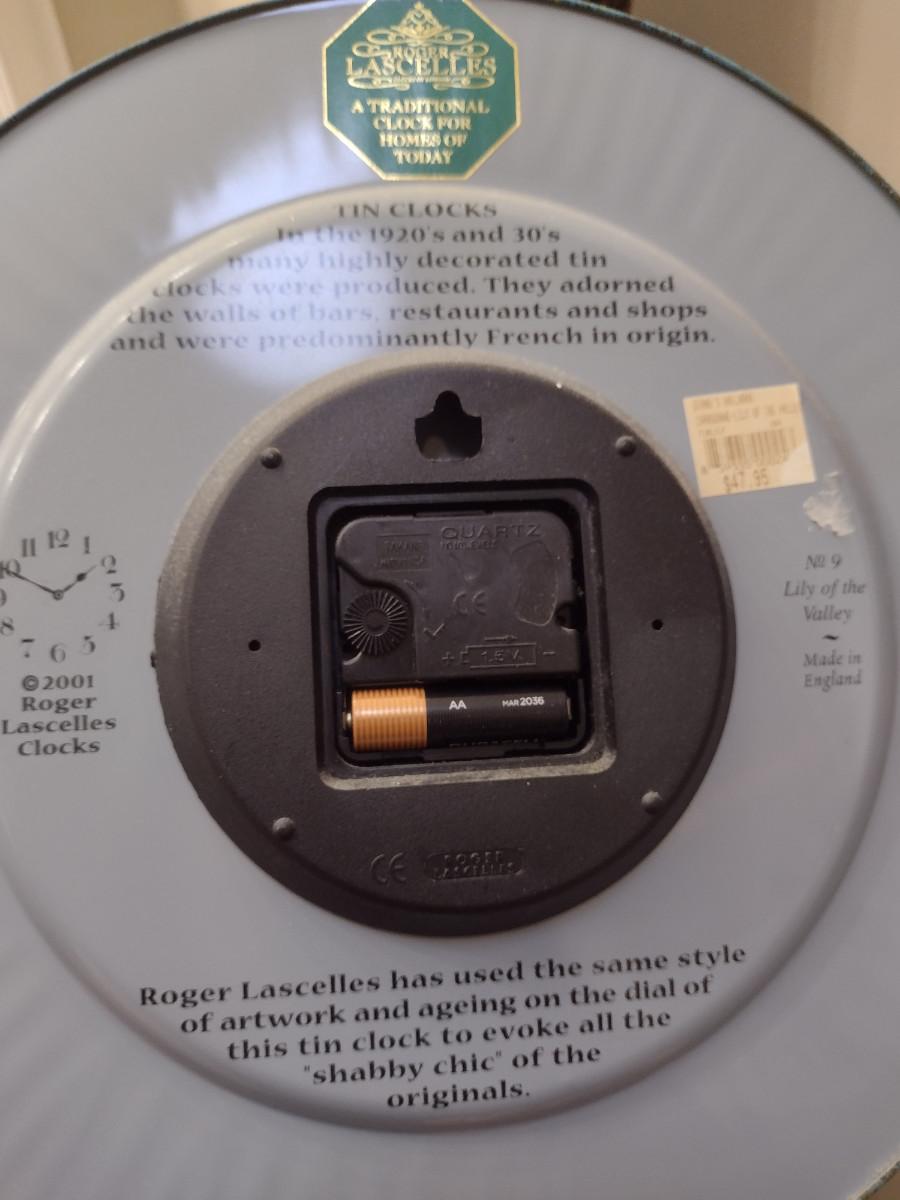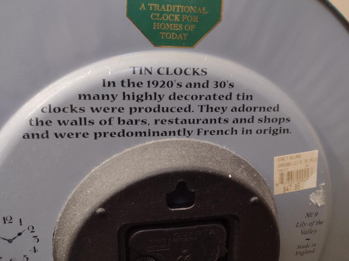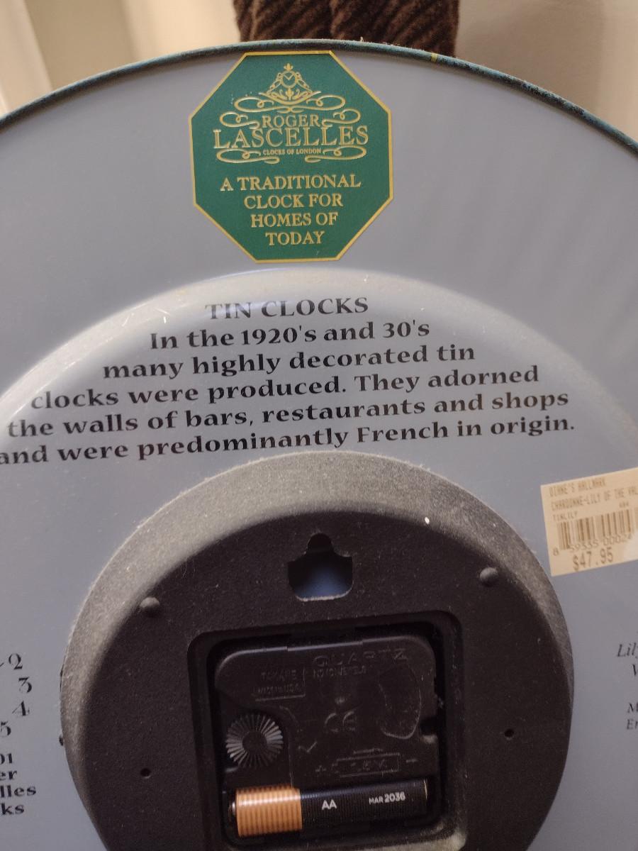Battery Operated Tin Clock- Approx 13 1/2" in Diameter