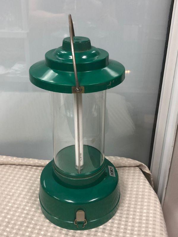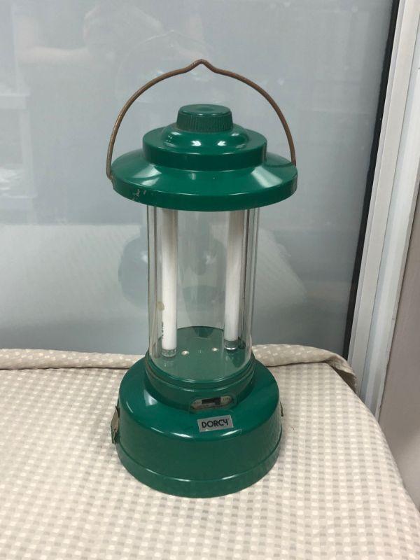 Green battery powered lantern by Dorcy. Untested, but looks in good condition.