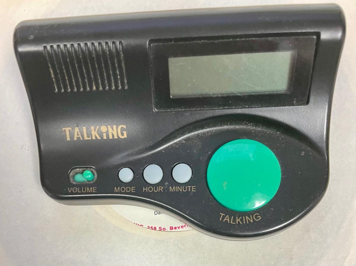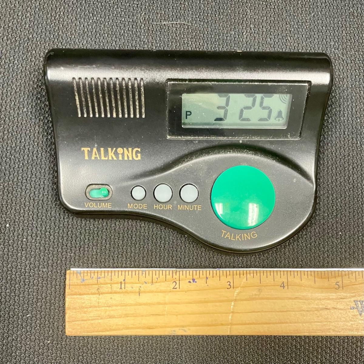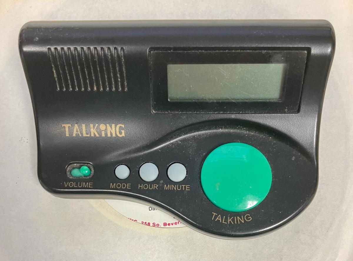 Lot of 3 LCD battery-powered talking clocks. All are tested and work as expected. Uses 2 AA batteries. Note that 1 clock is missing the battery cover on the bottom.
