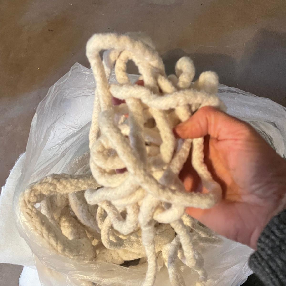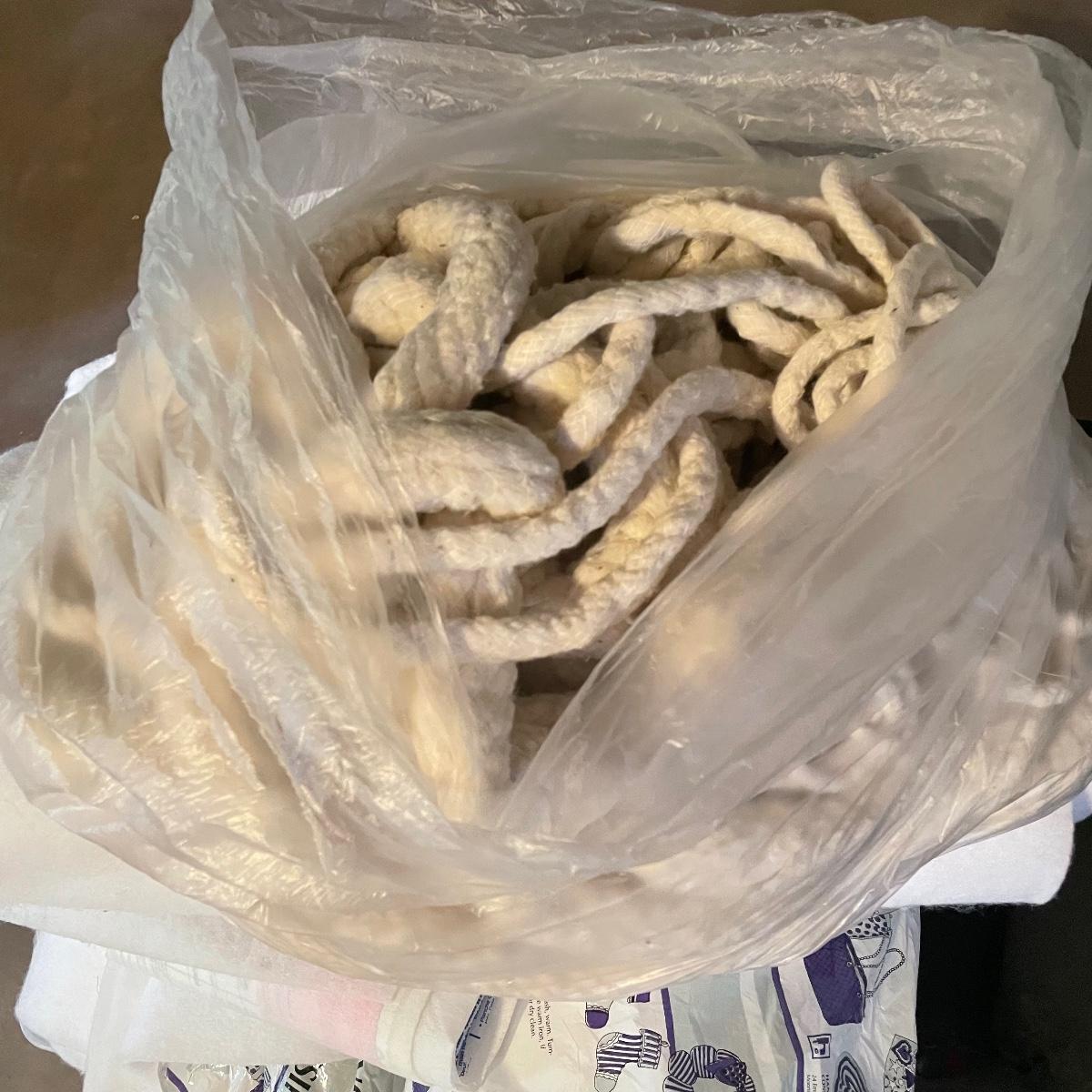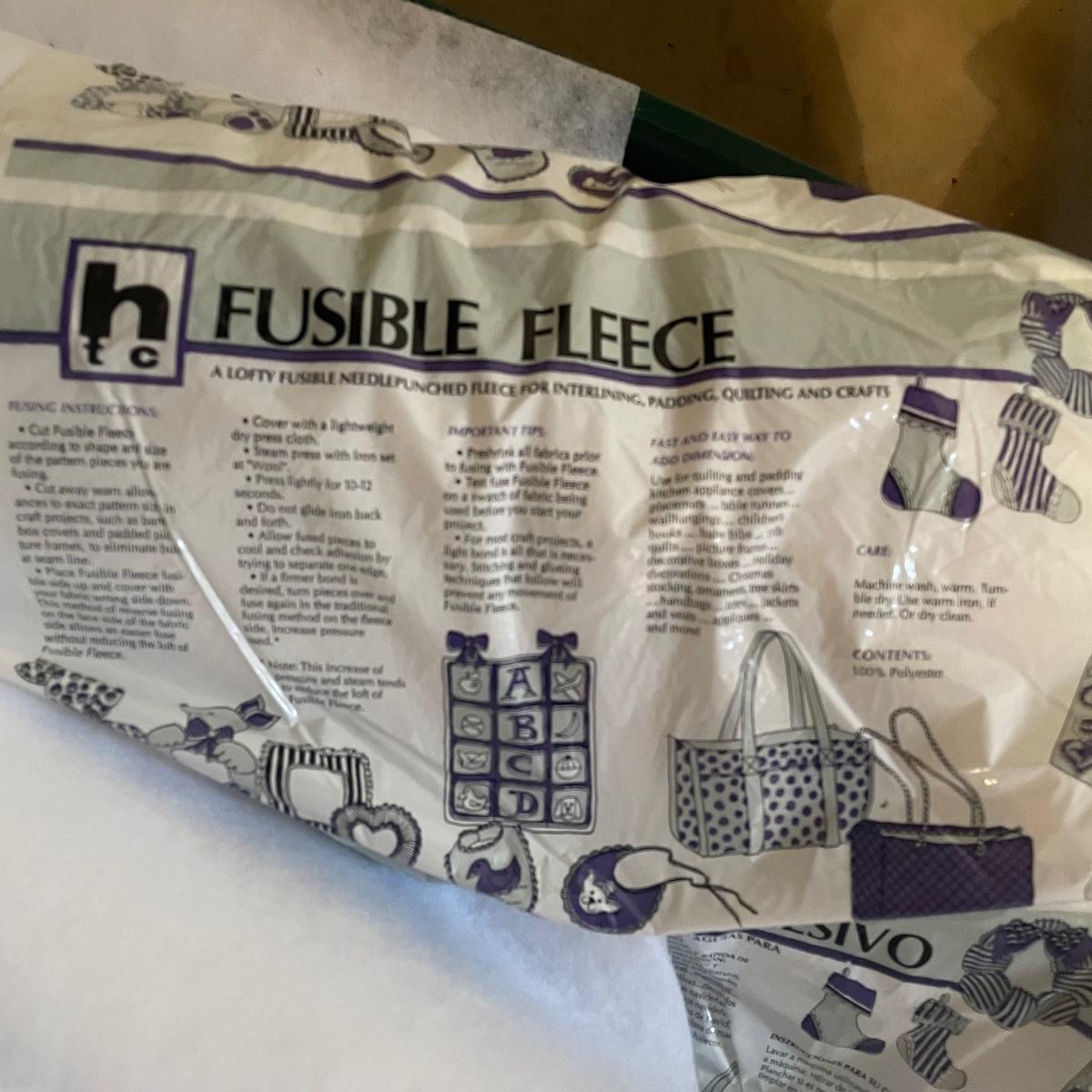 Plenty of batting and fusible fleece in this lot that also includes a pillow and some soft cotton rope.