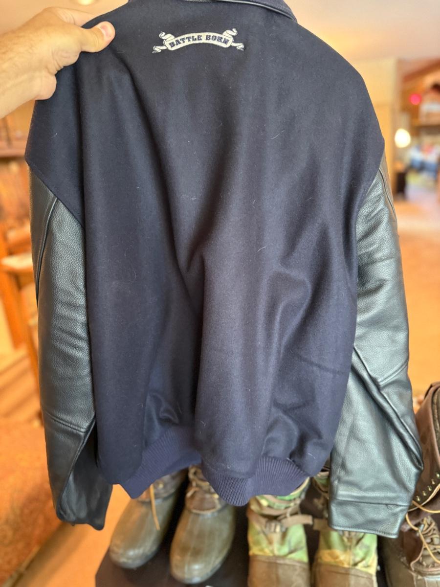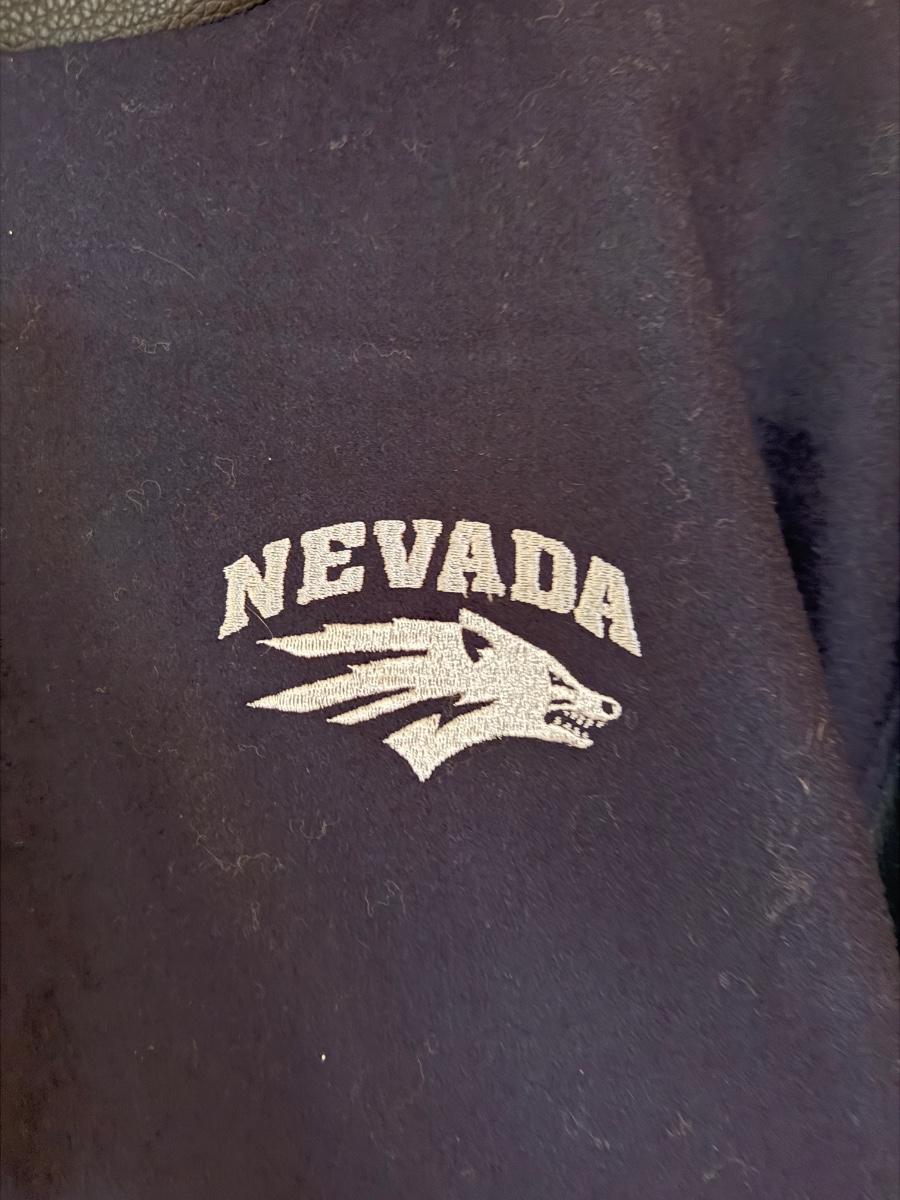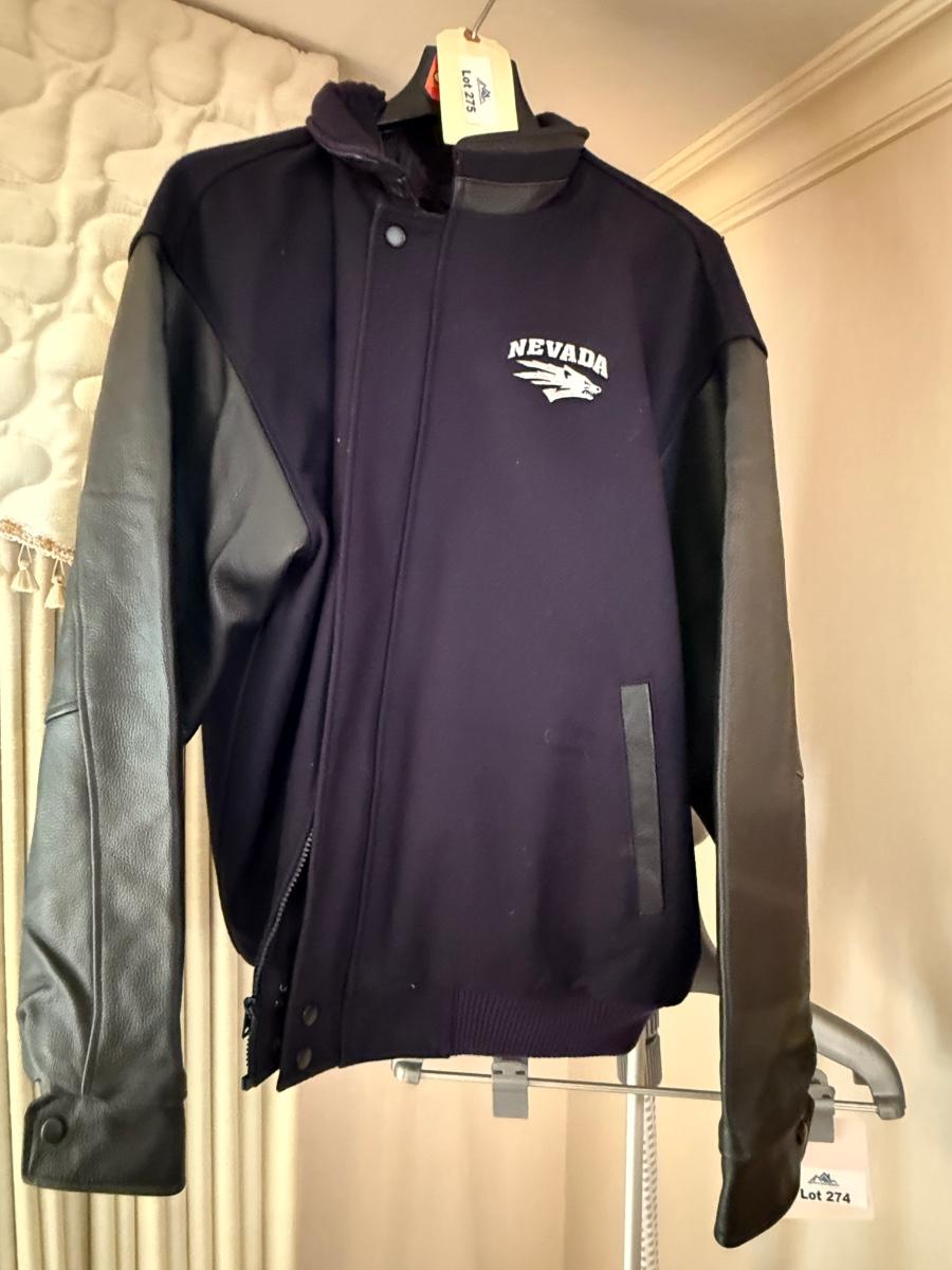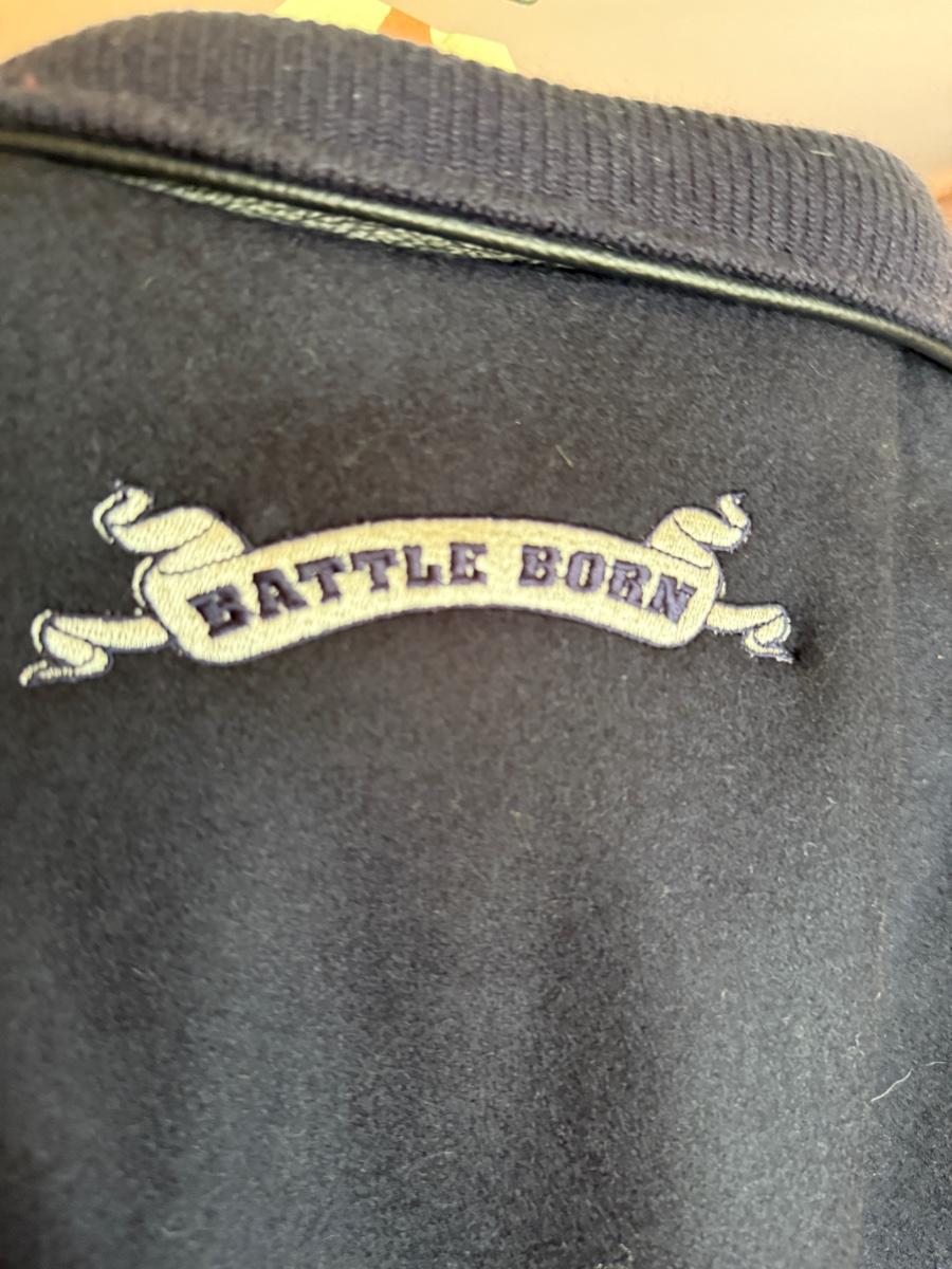 Battle Born UNR XL Blue & Leather sleeved Bomber coat