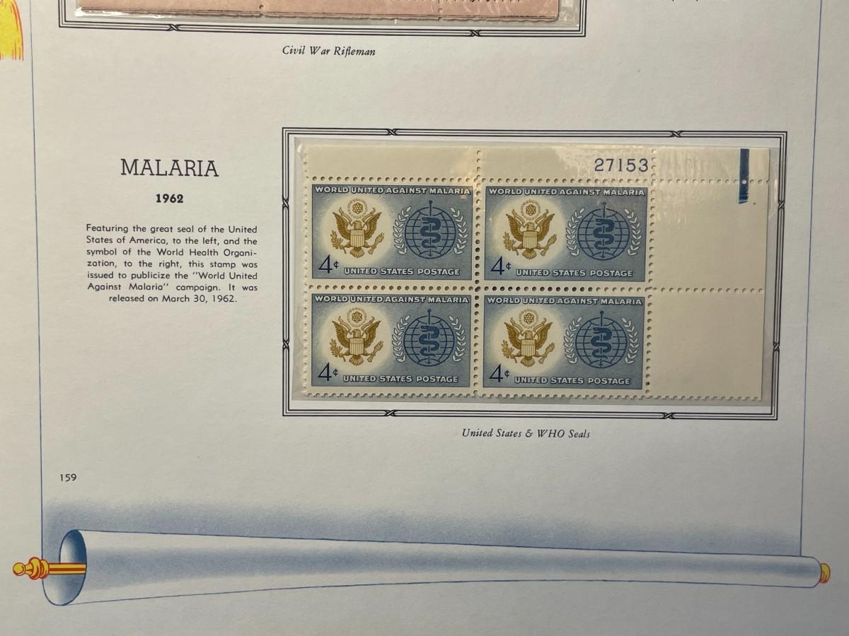 Battle of Shiloh & Malaria 1962 Mint Condition US Stamp Plate Blocks Page as Pictured. Only One $5 Shipping Charge for 1 or 100 Pages Won.