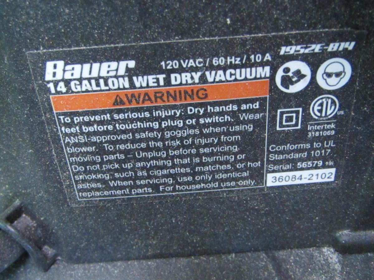 Bauer 14 Gallon Wet/Dry Vacuum. Untested.